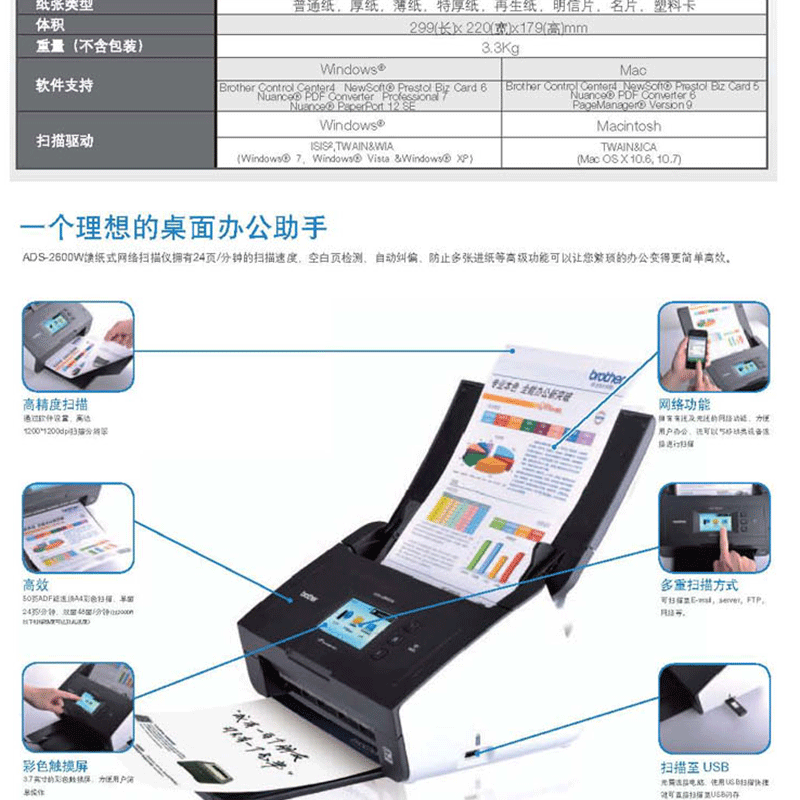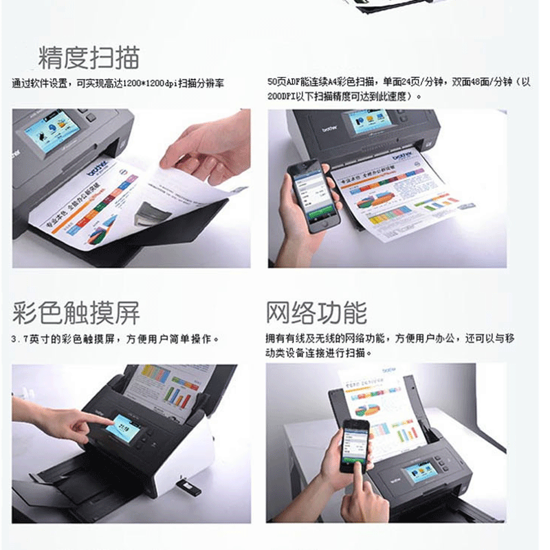 3.7英寸彩色觸摸屏 支持無(wú)線掃描 自動(dòng)雙面掃描 掃描速度:24頁(yè)/分鐘 ?