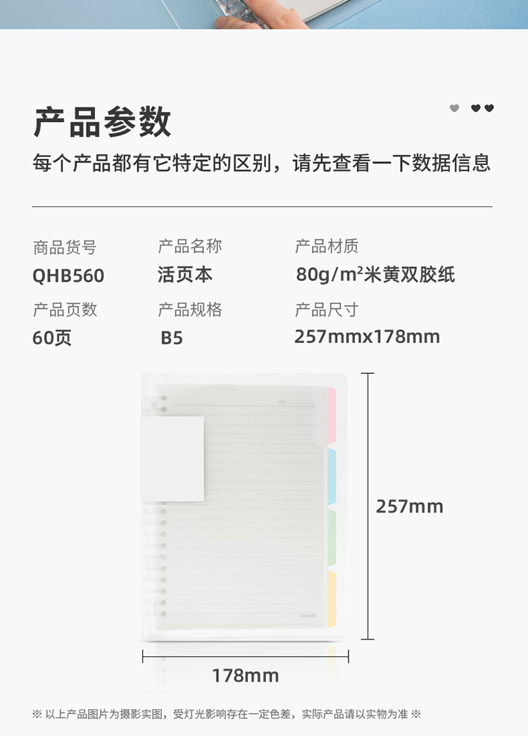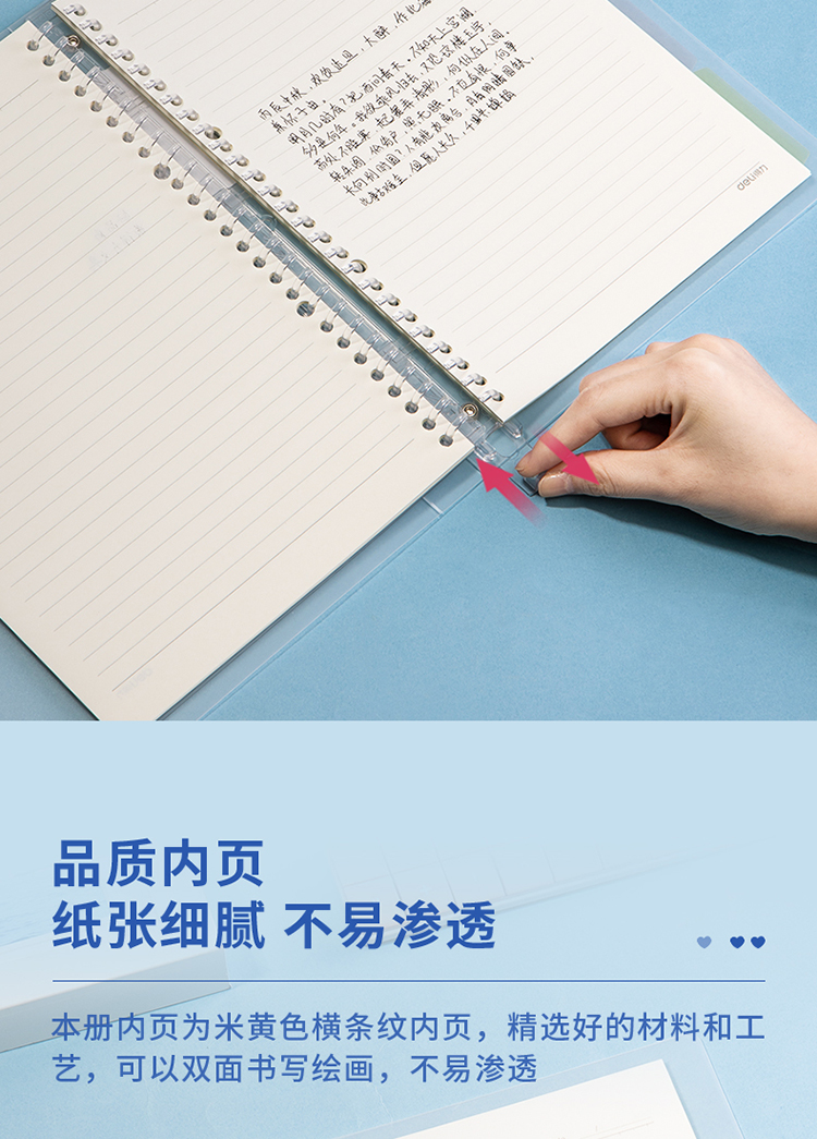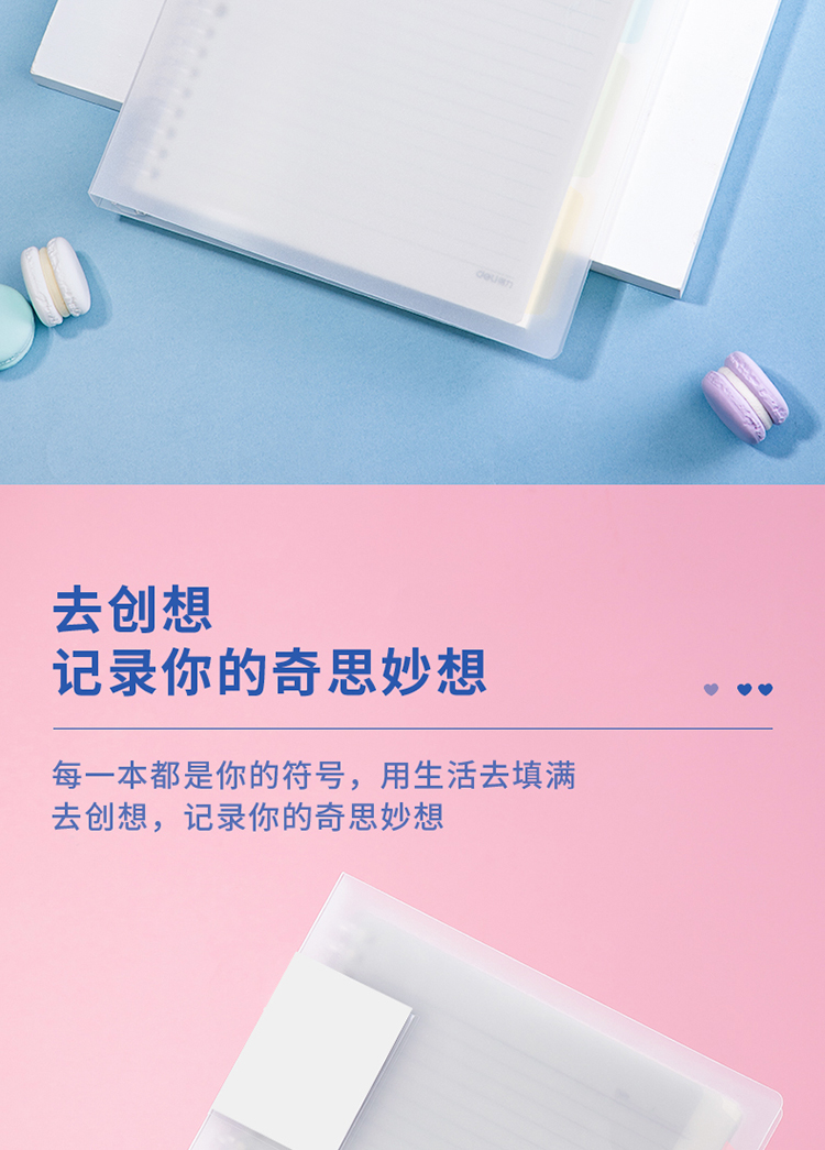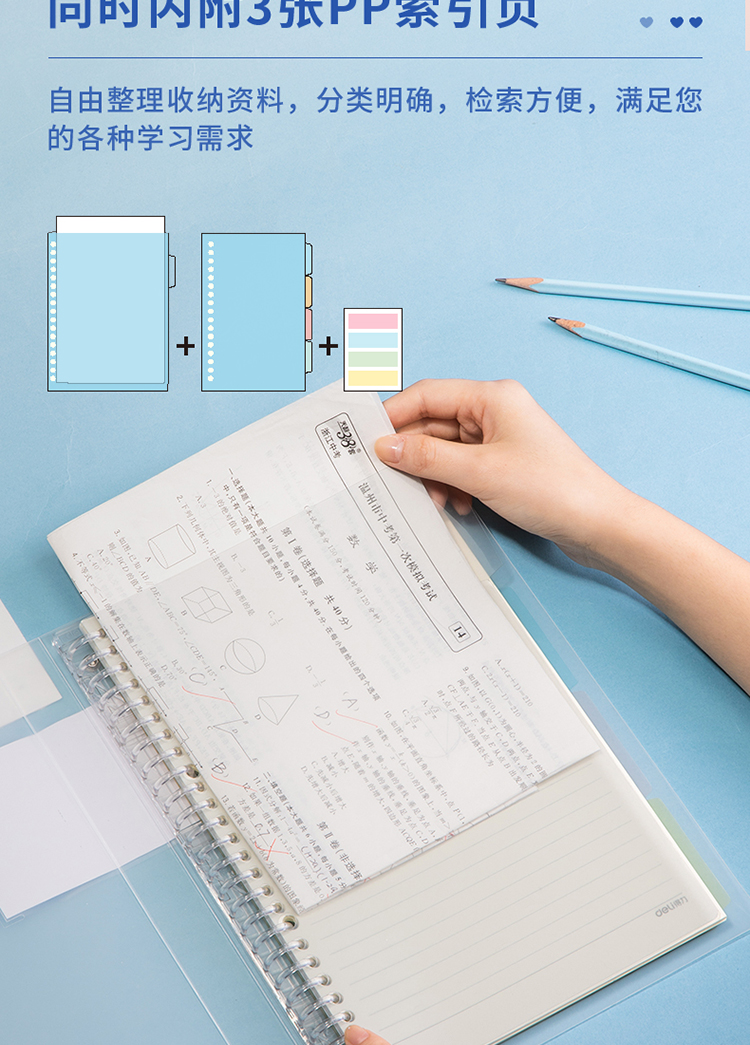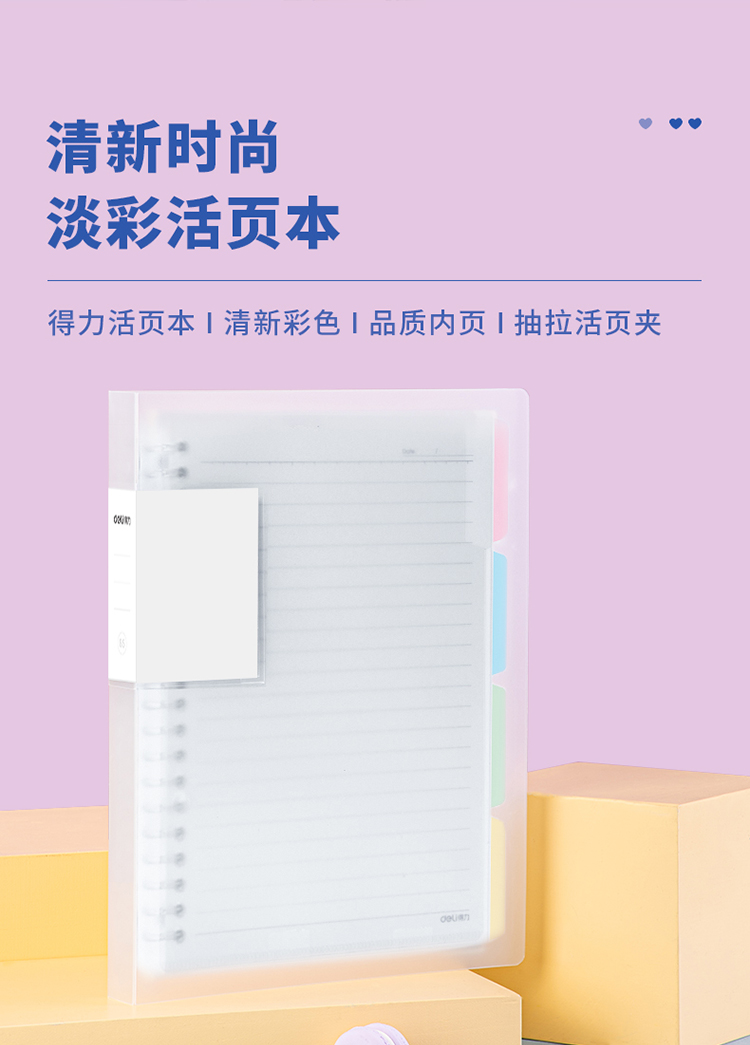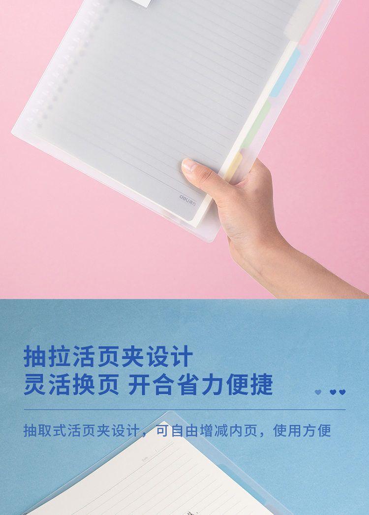 得力(deli)甜彩系列26孔B5活頁筆記本子 活頁紙?zhí)鎿Q芯插袋4色索引分隔頁 透明款QHB560