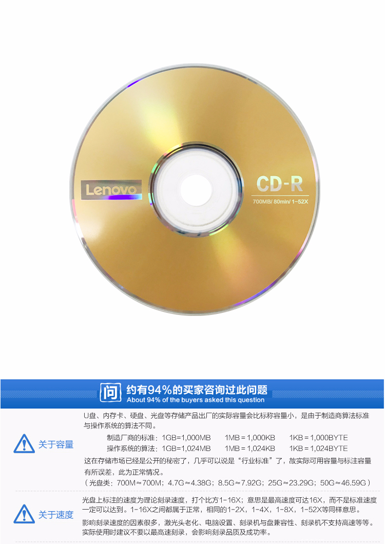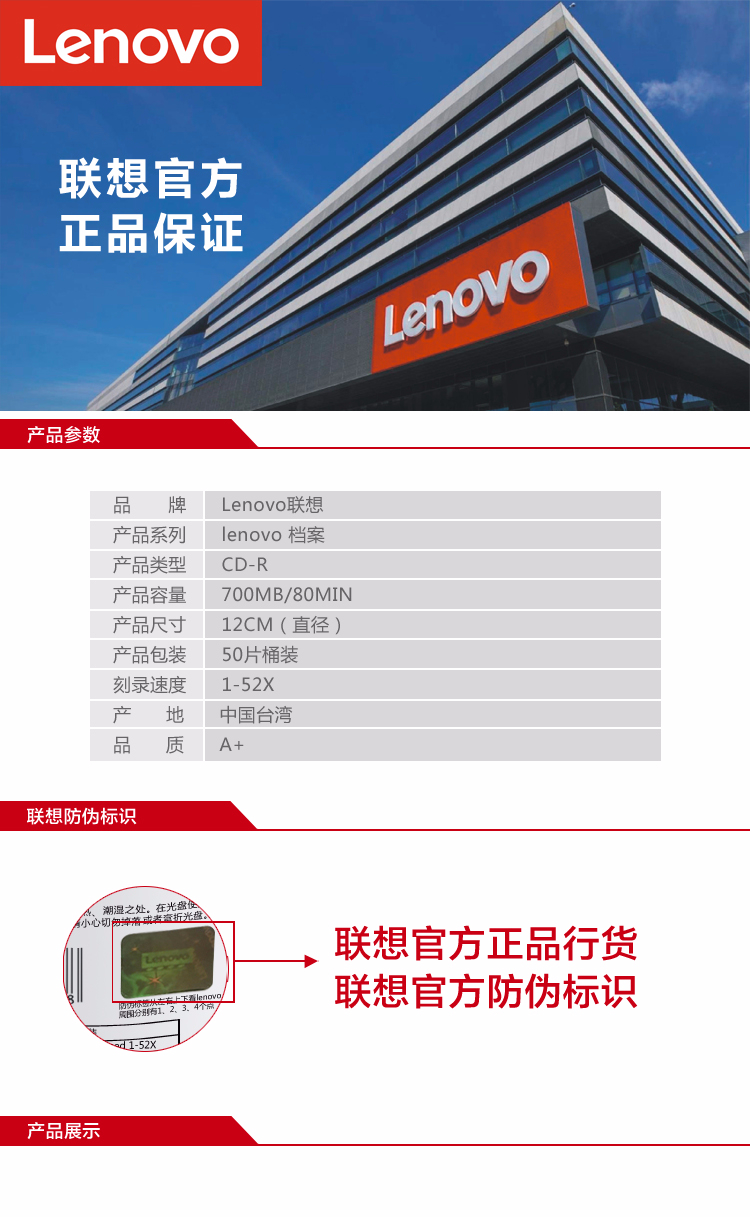 聯(lián)想(Lenovo)CD-R 光盤 52速700MB 桶裝50片