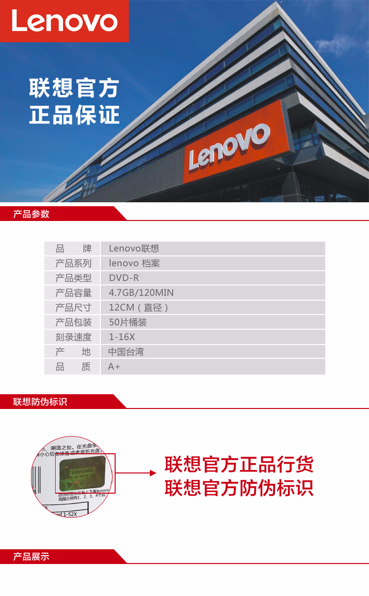 聯(lián)想(Lenovo)DVD-R 光盤 16速4.7GB 桶裝50片
