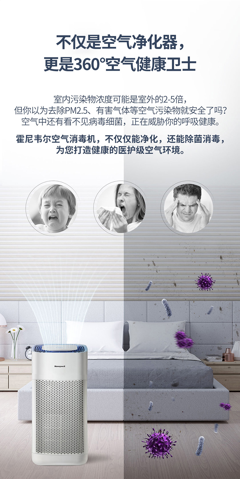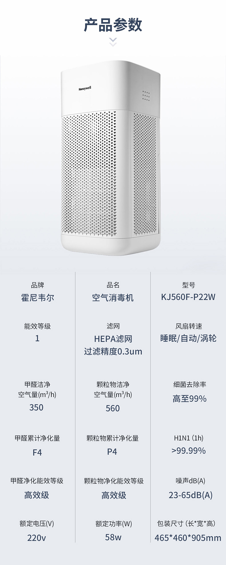 霍尼韋爾(Honeywell) KJ560F-P22W空氣凈化器 UV消毒除菌除甲醛除霧霾空氣消毒機(jī)