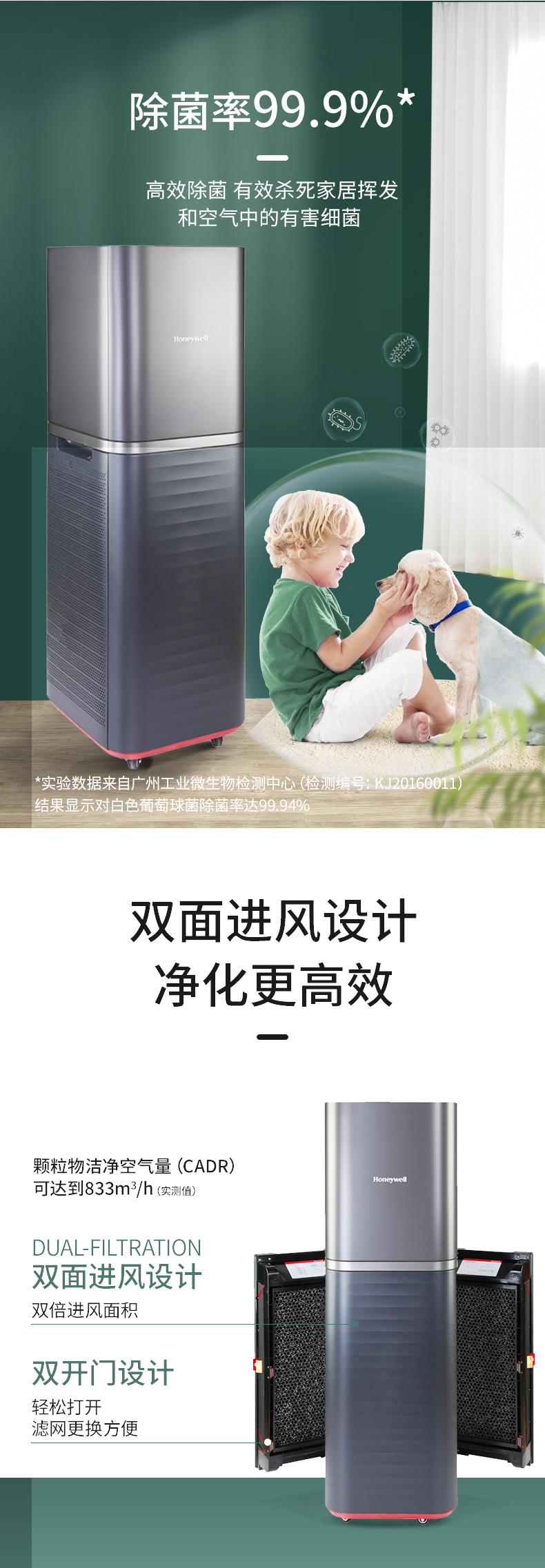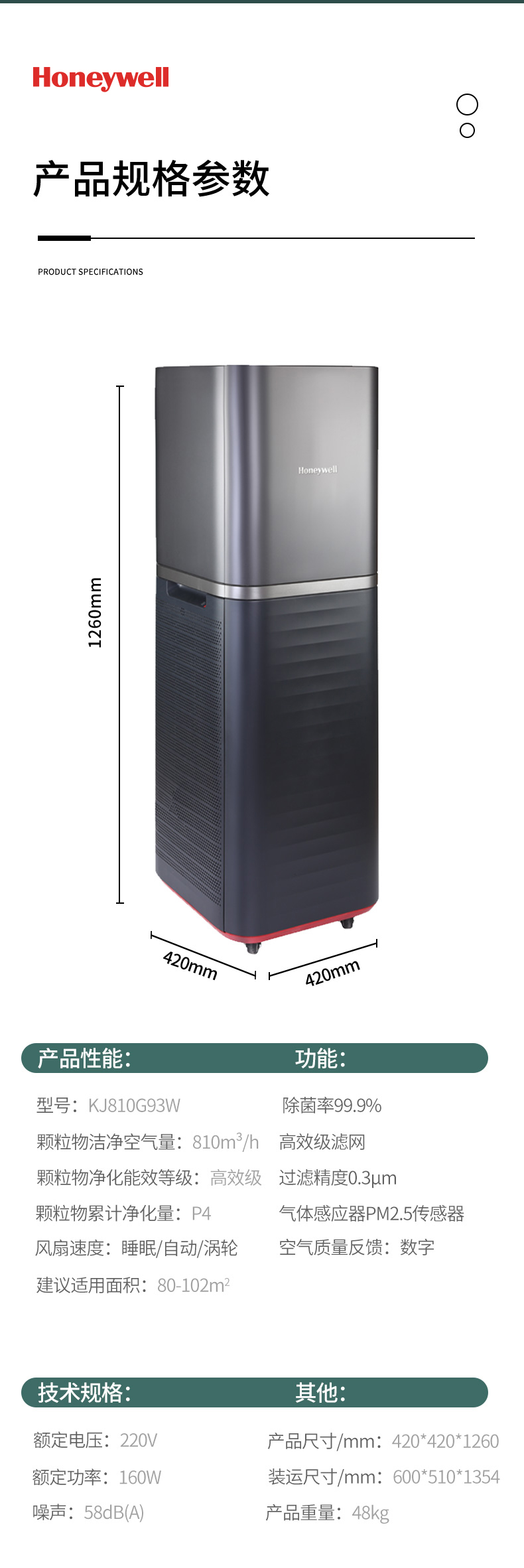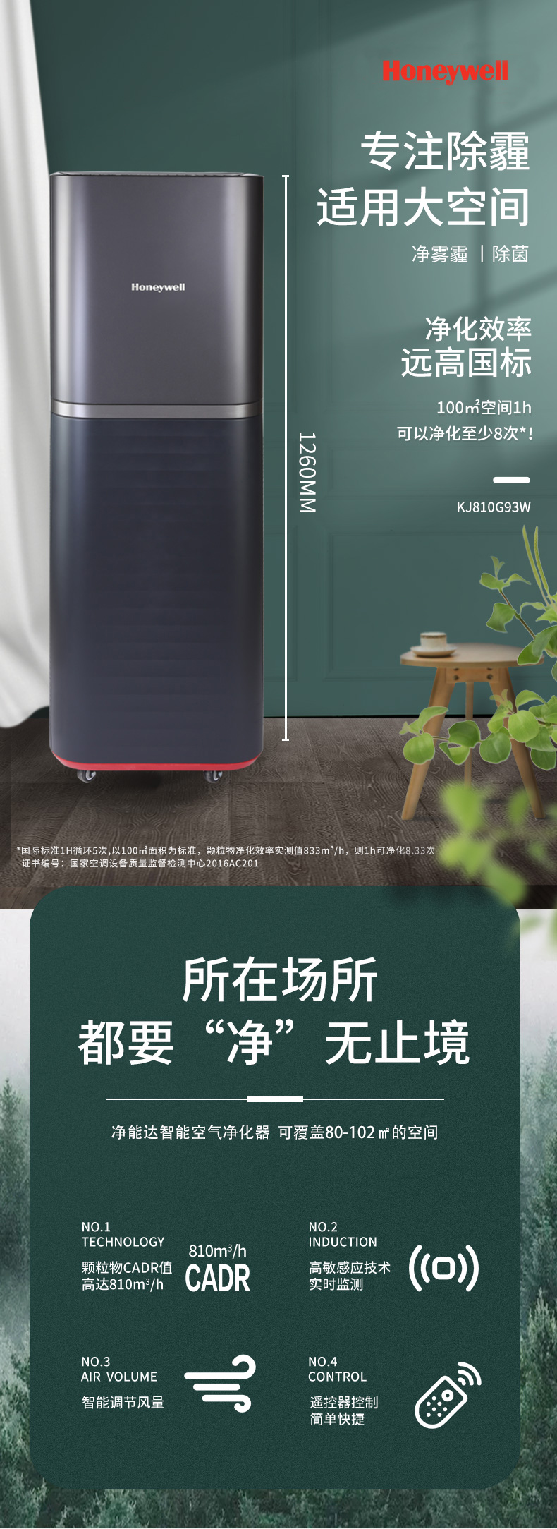 霍尼韋爾(Honeywell) KJ810G93G空氣凈化器 商務(wù)辦公除甲醛 大空間除霧霾凈化器遙控款
