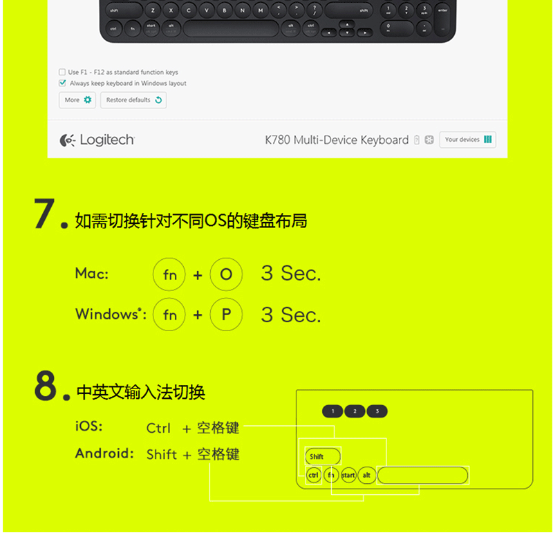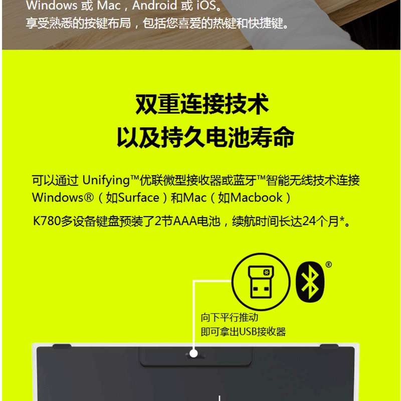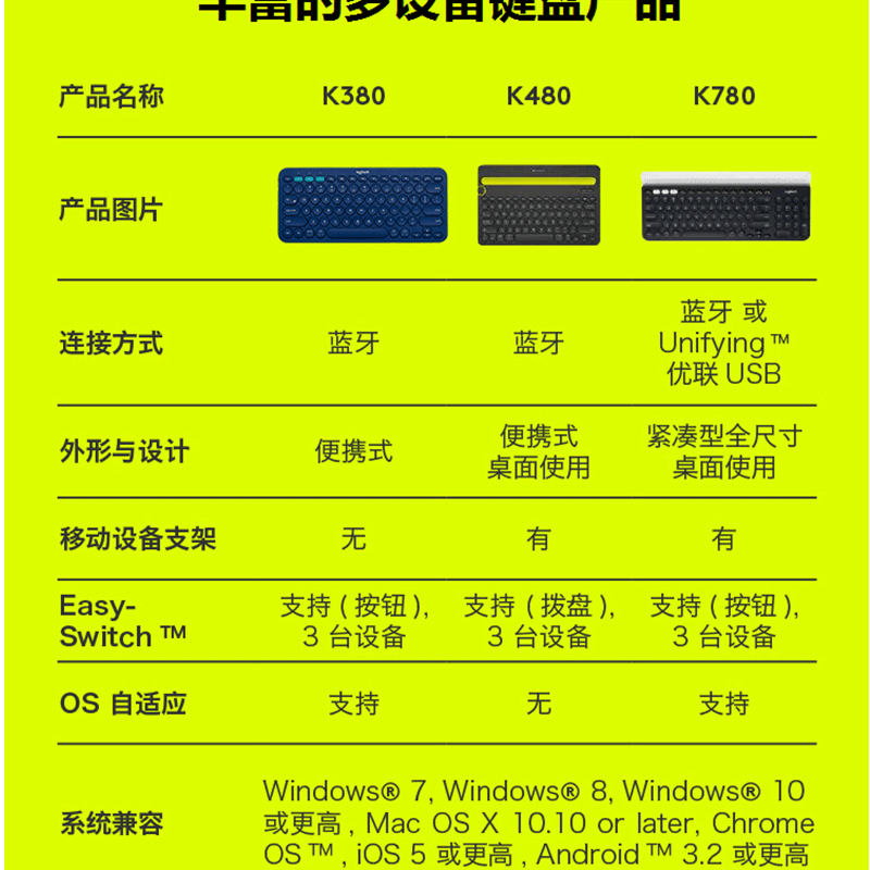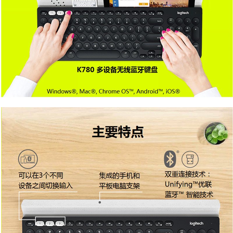 羅技(Logitech) K780 智能無(wú)線藍(lán)牙鍵盤 (黑色)