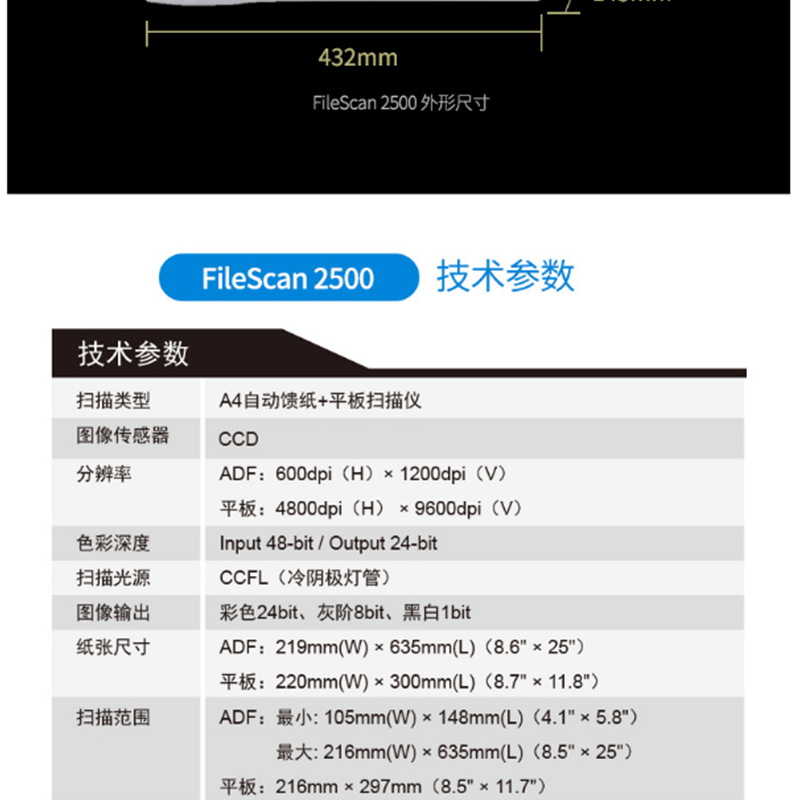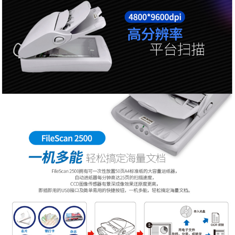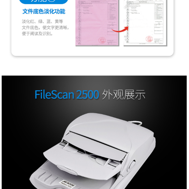 中晶(MICROTEK) FileScan 2500 平板+饋紙式高速掃描儀(掃描速度:25頁/分鐘)