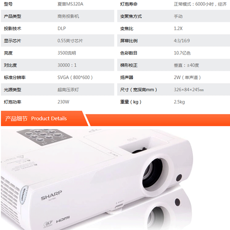夏普(SHARP) XG-MS320A 新品商務(wù)投影機(jī) 3500流明