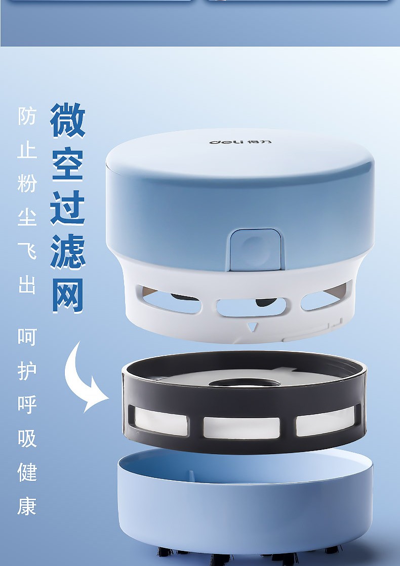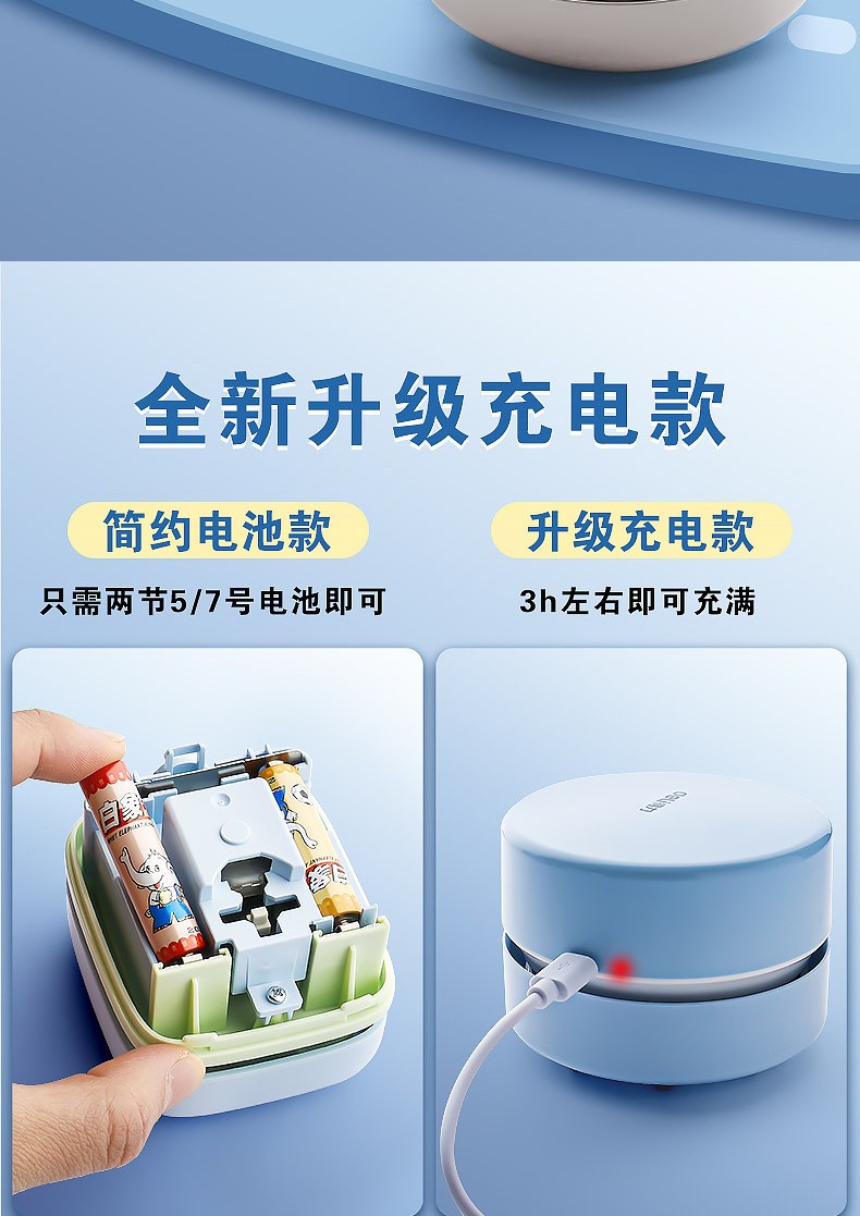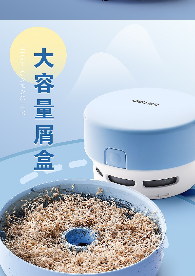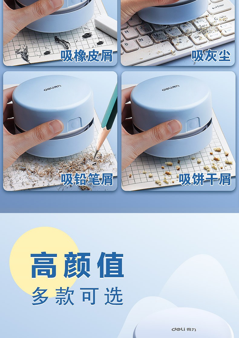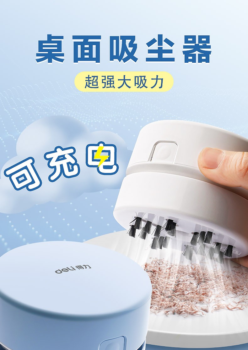得力 桌面吸塵器電動橡皮擦屑清潔器 淺藍(lán)/手提充電款18890