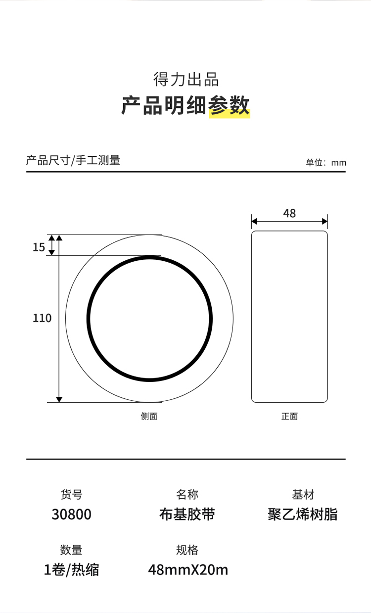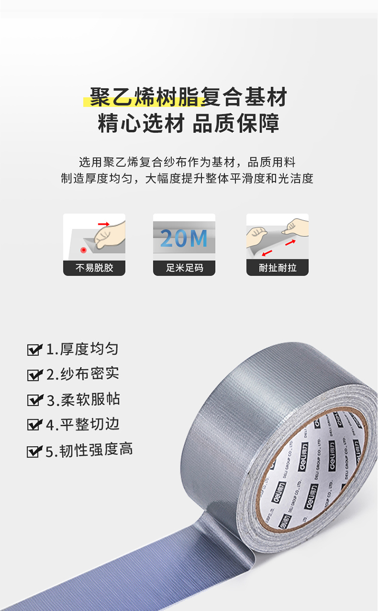 得力 強(qiáng)力布基膠帶 耐磨防水易手撕48mm*20m*230μm 30800