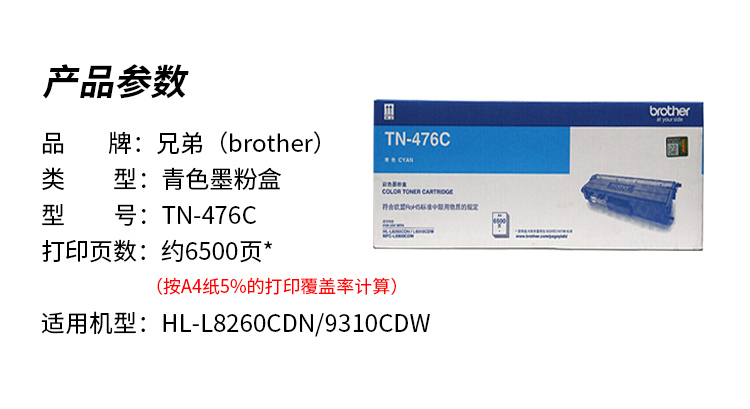 兄弟(brother)TN-476C 青色墨粉盒(適用HL-L8260CDN/9310CDW機(jī)型)