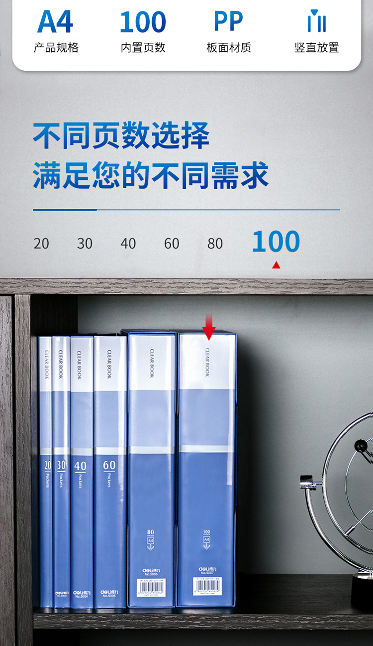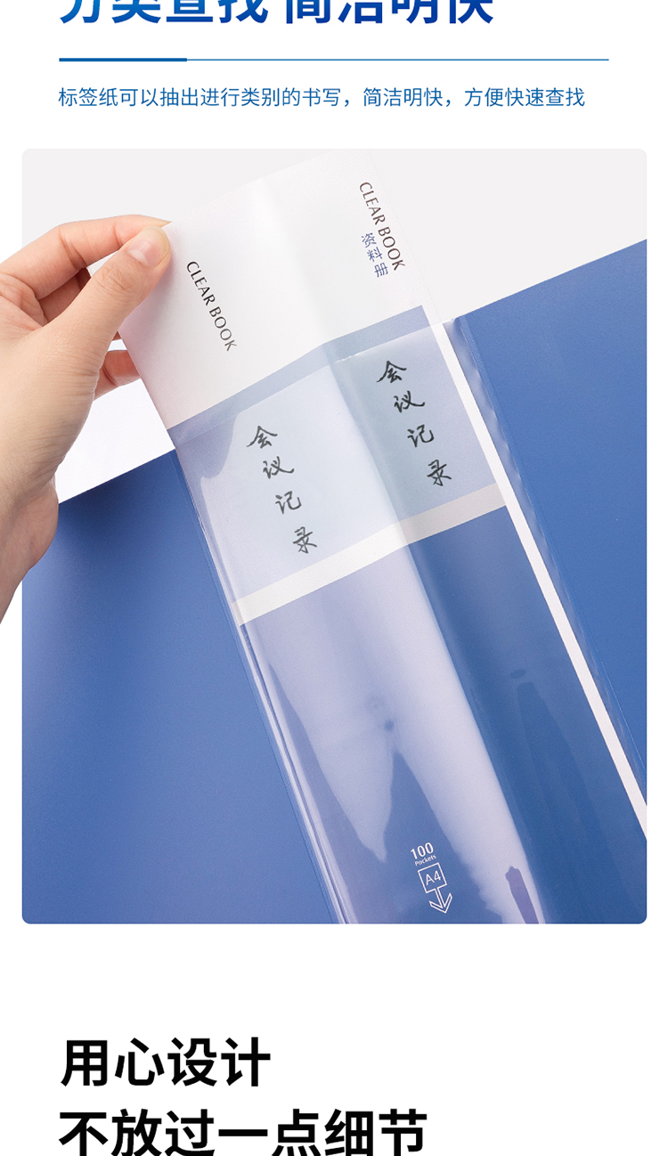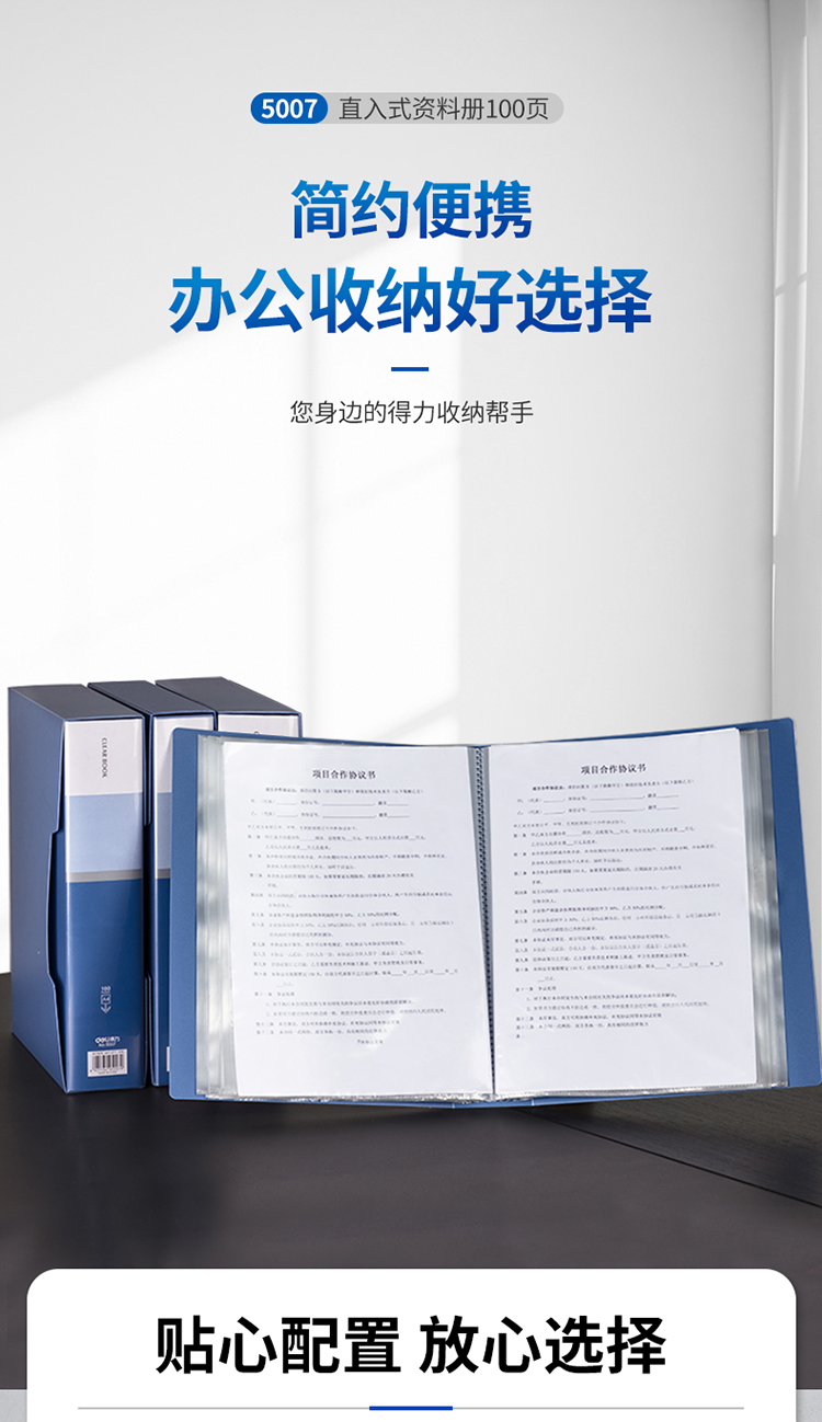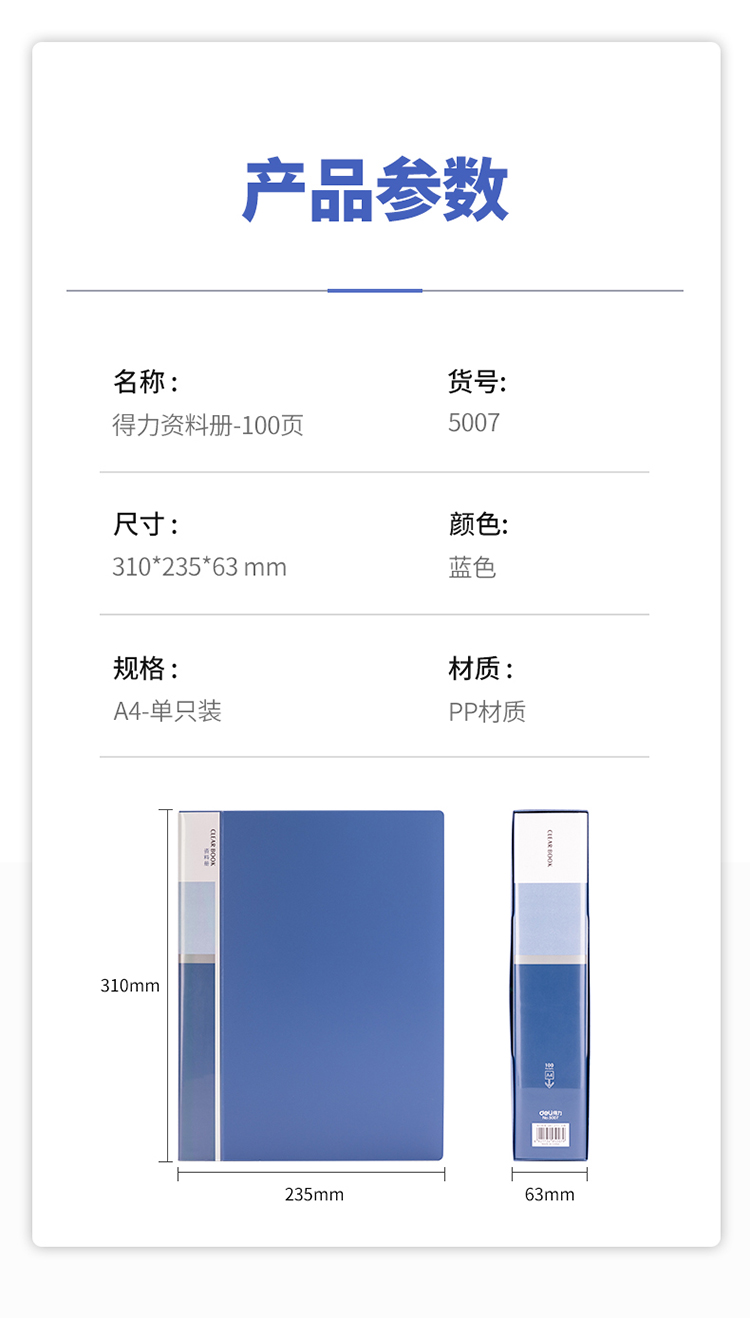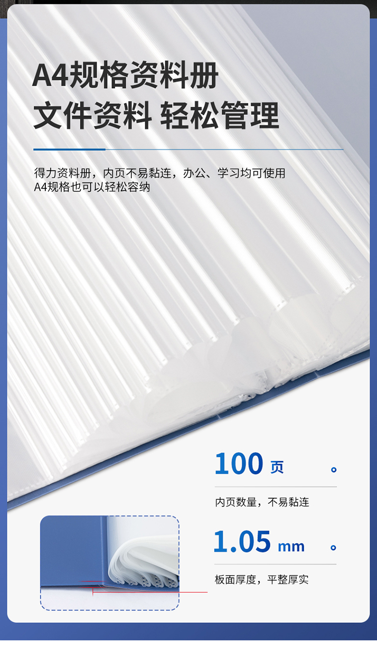 得力(deli)5007 大容量A4/100頁辦公資料冊 藍色