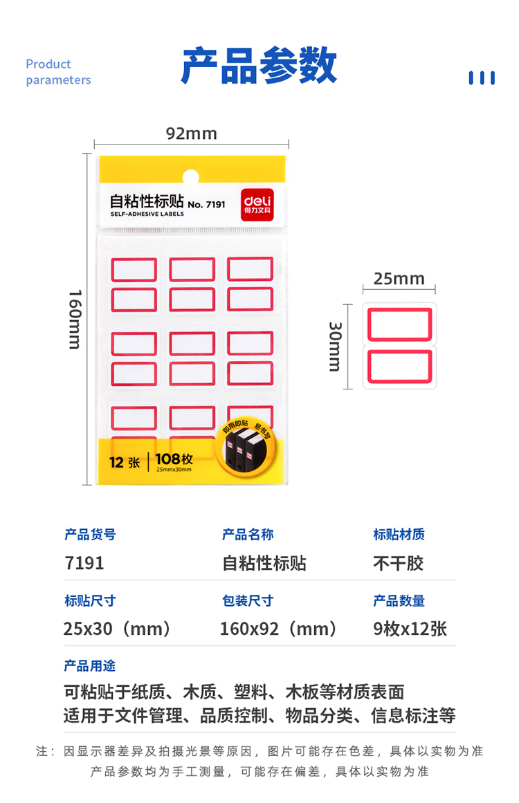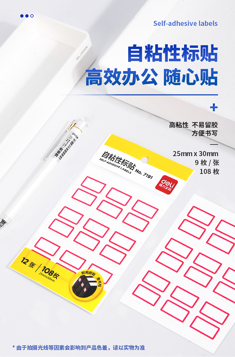得力(deli)108枚25×30mm紅框不干膠標(biāo)簽貼9枚/張7191