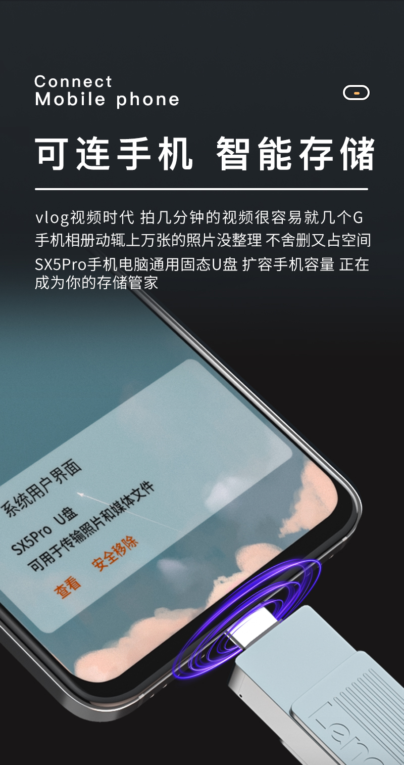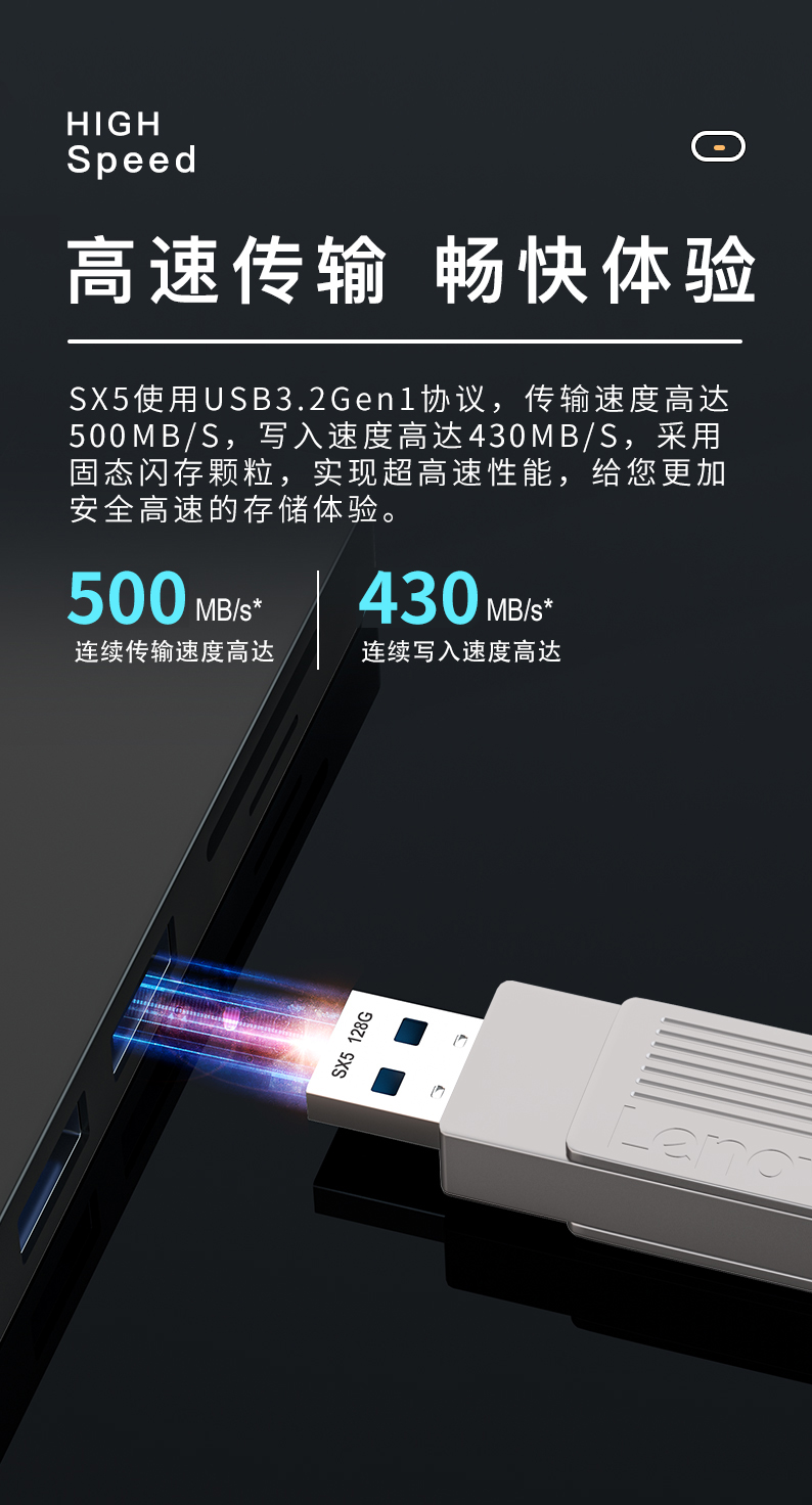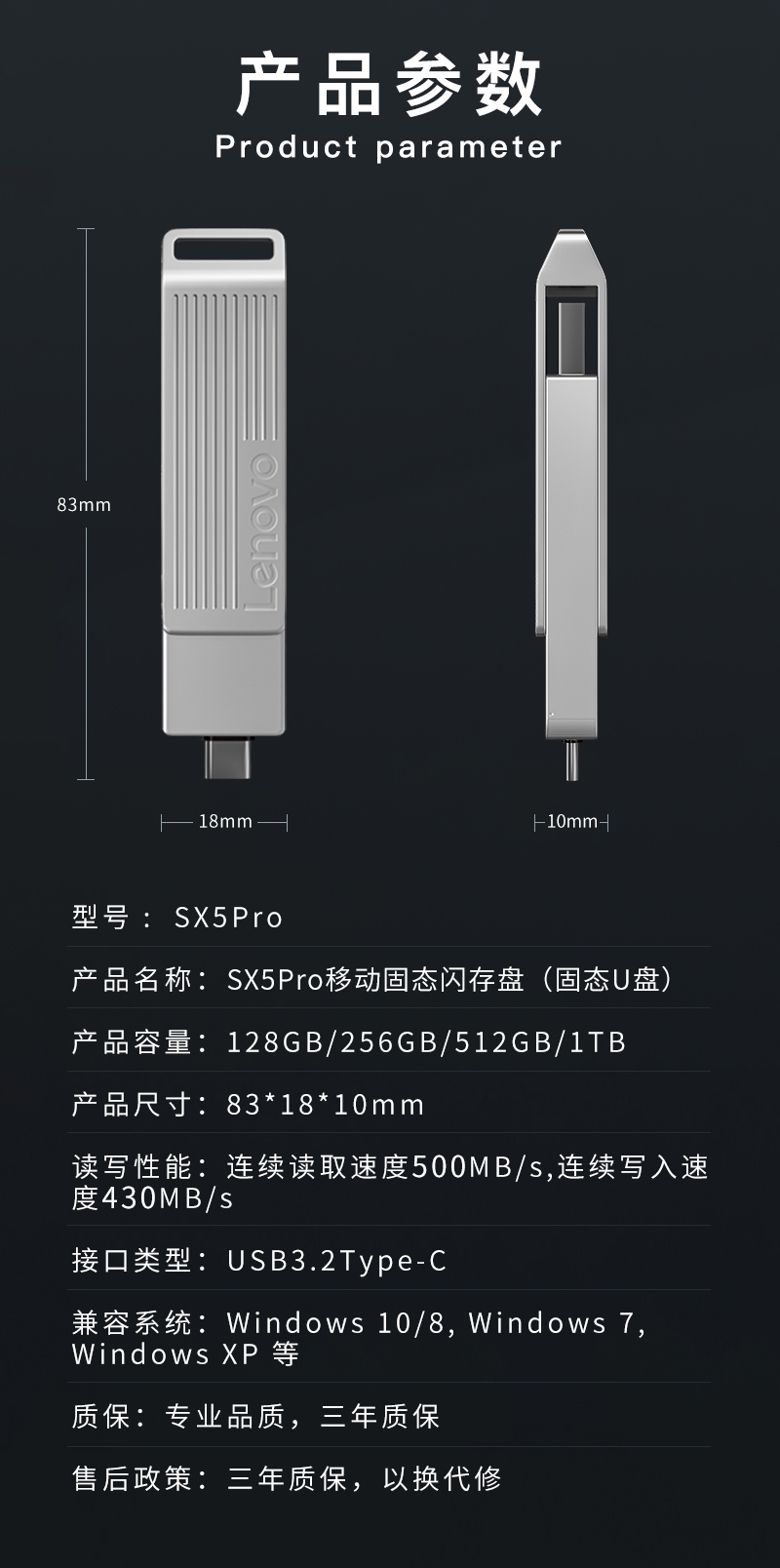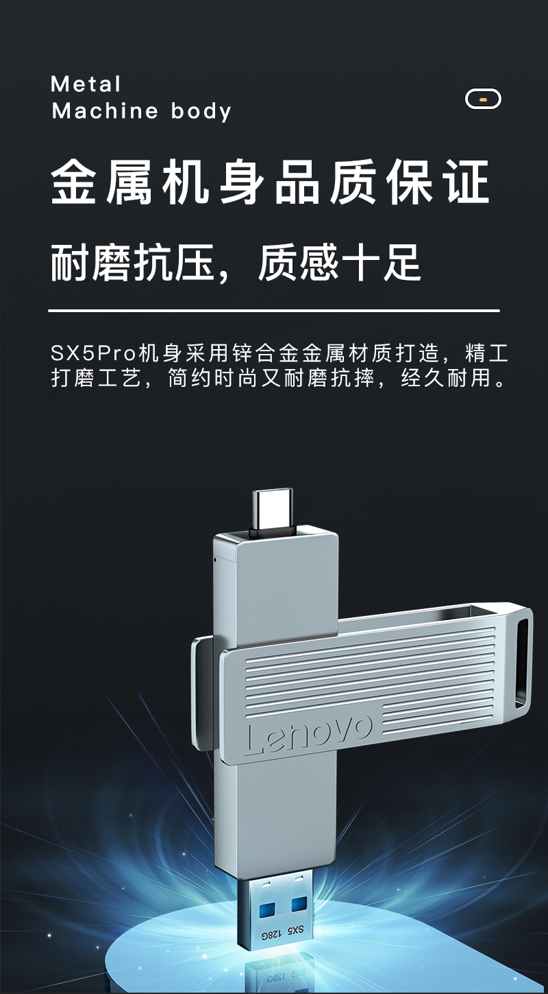 聯(lián)想(Lenovo)256GB u盤 USB3.2/Type-C雙接口 手機電腦兩用 SX5 Pro系列 銀色