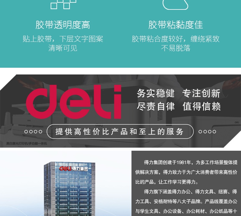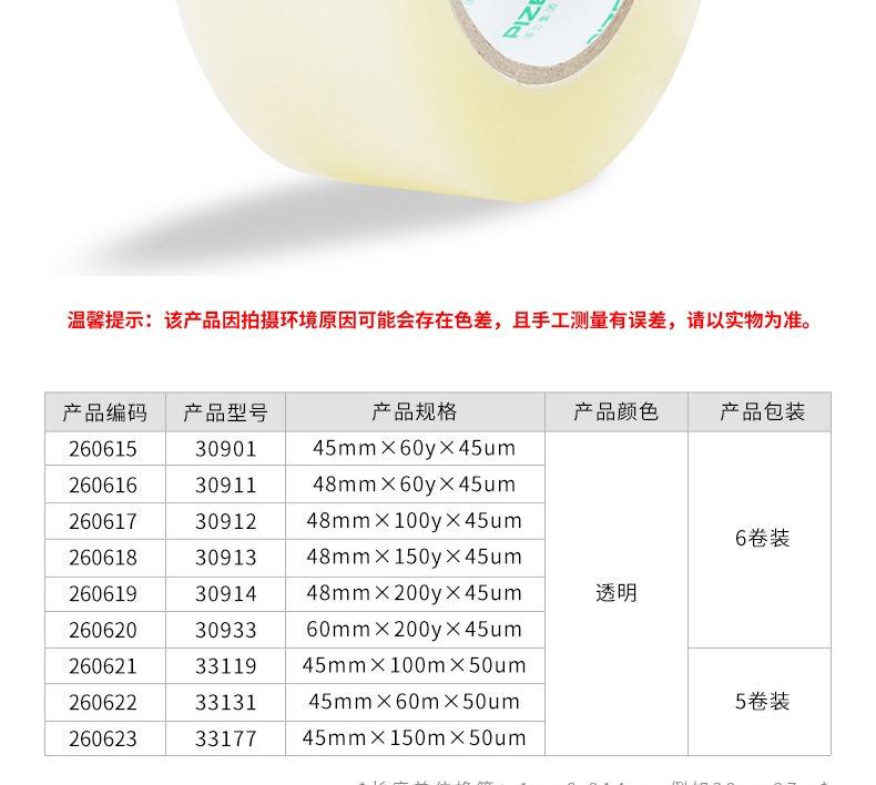 得力(deli) 透明膠帶 45mm*60m*50um 6卷/筒 辦公用品 筒裝 30173