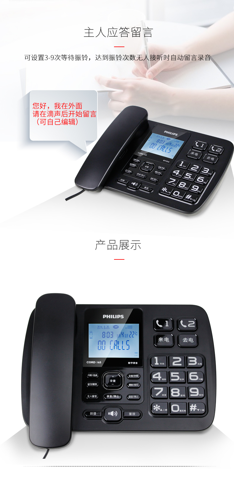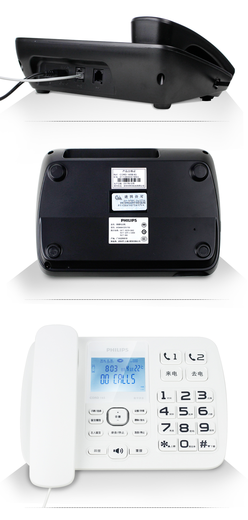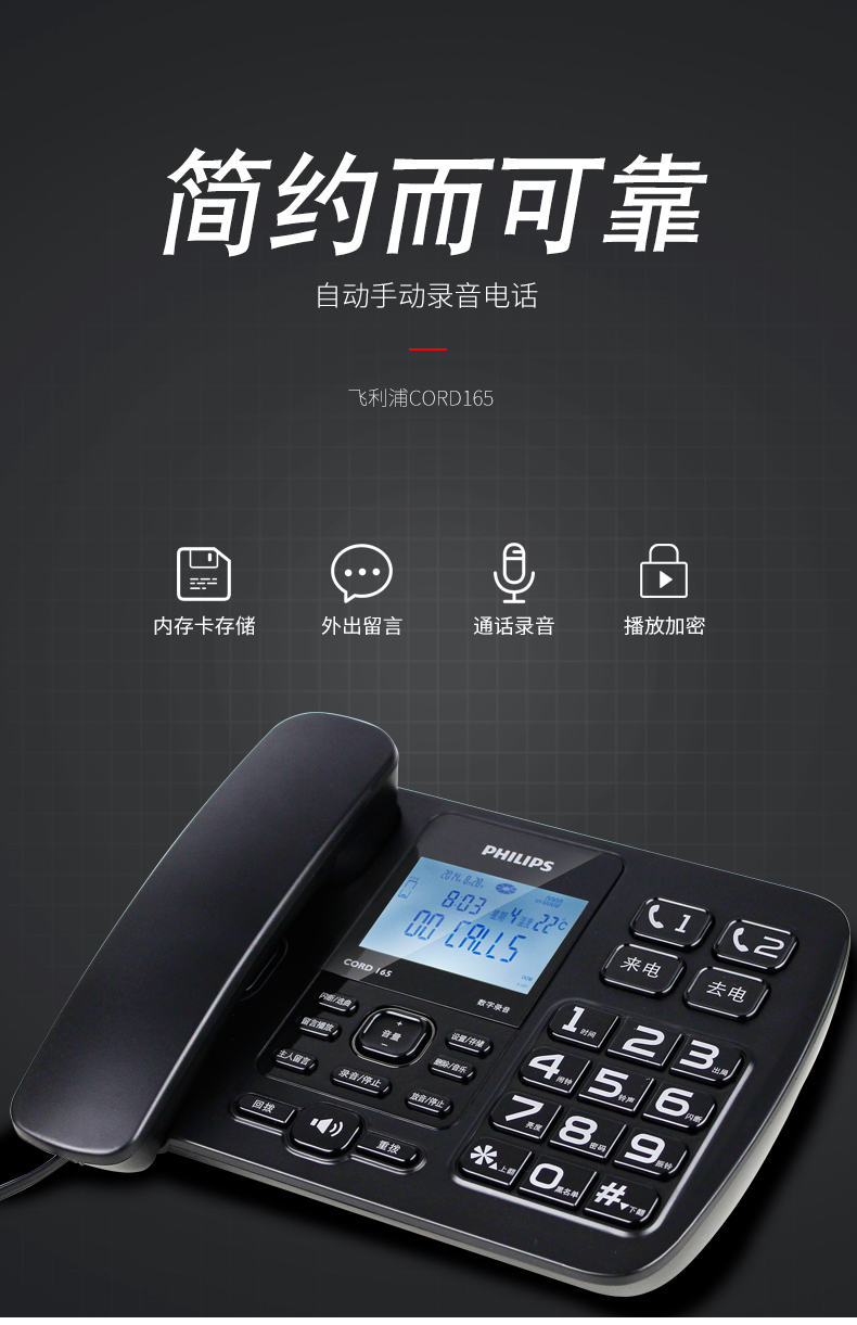 飛利浦(PHILIP) CORD165 電話機(jī) 黑色 16G卡