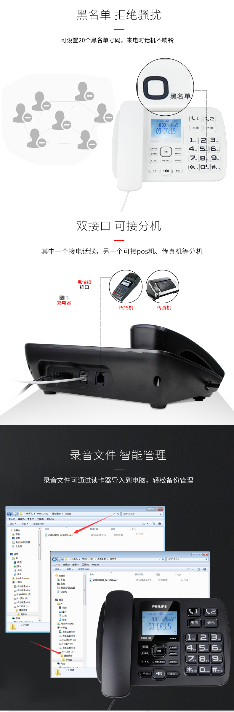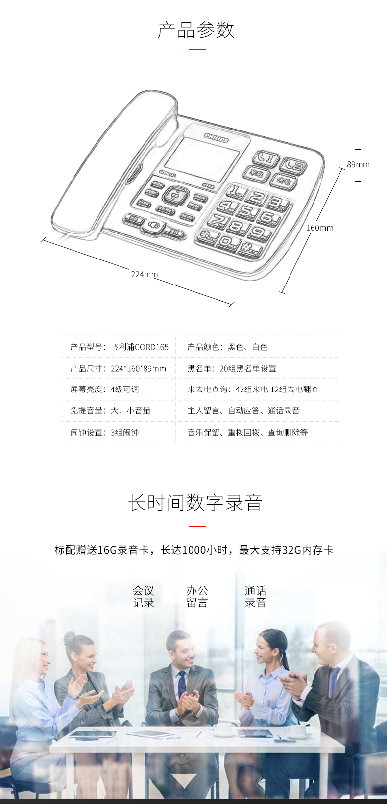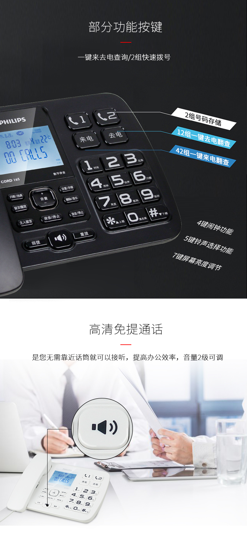 飛利浦(PHILIP) CORD165 電話機(jī) 黑色 16G卡