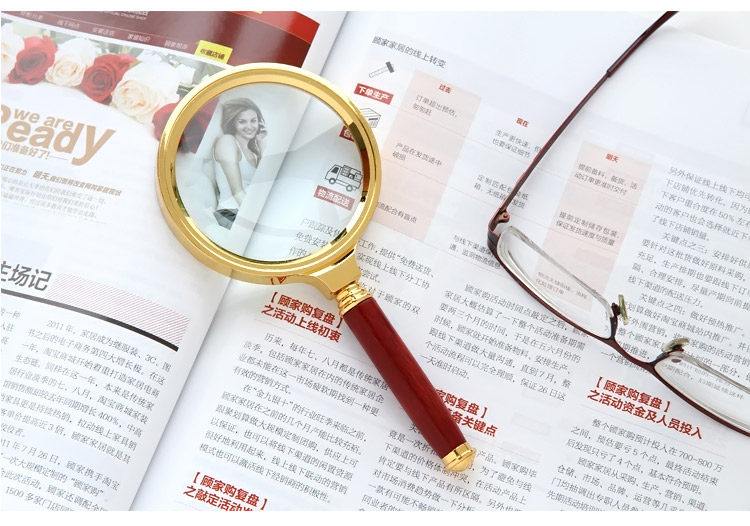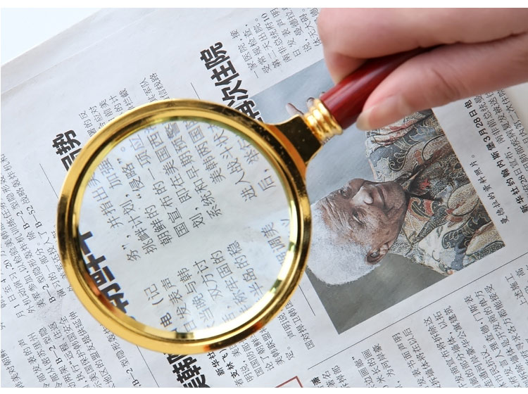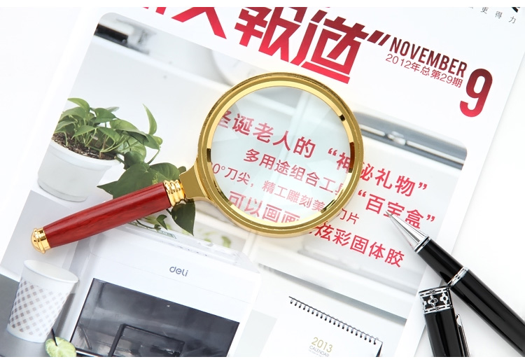 得力(deli)9097 直徑70mm 復(fù)古金屬框木質(zhì)手柄架放大鏡