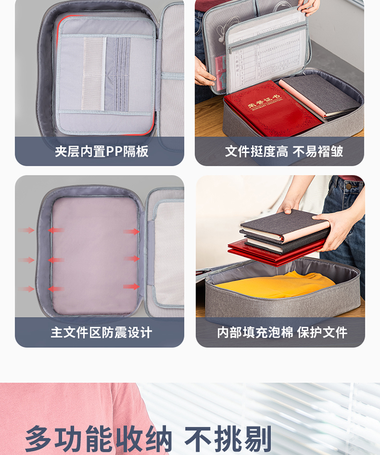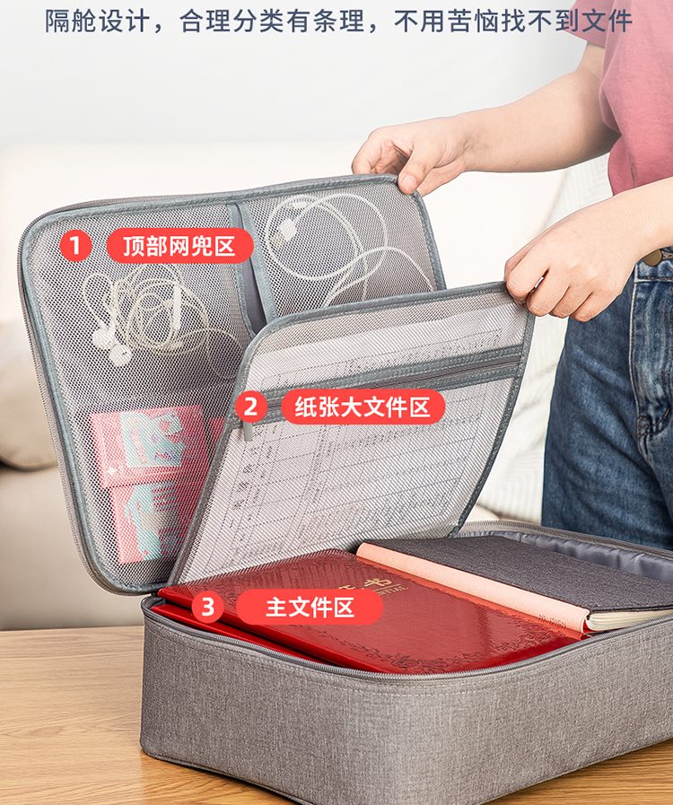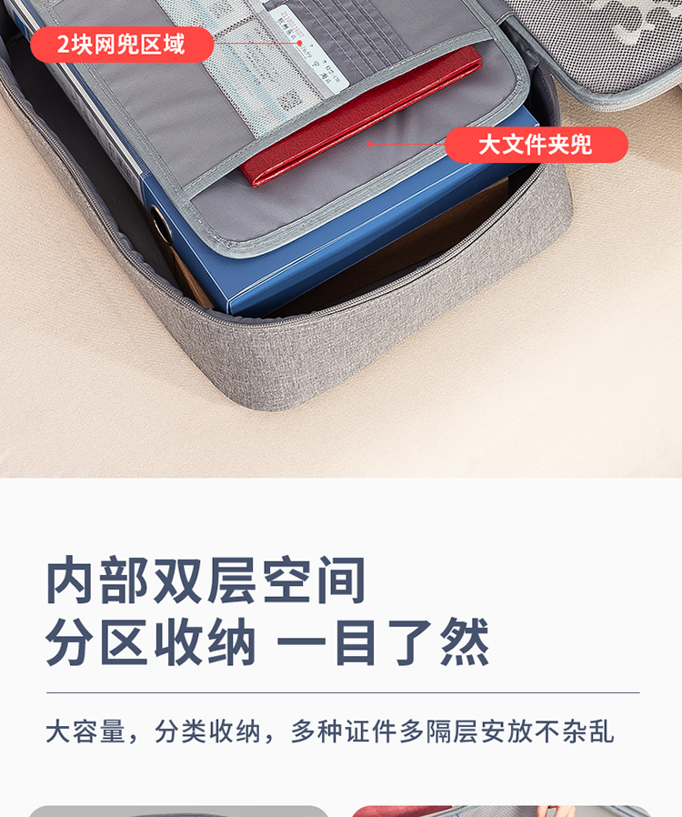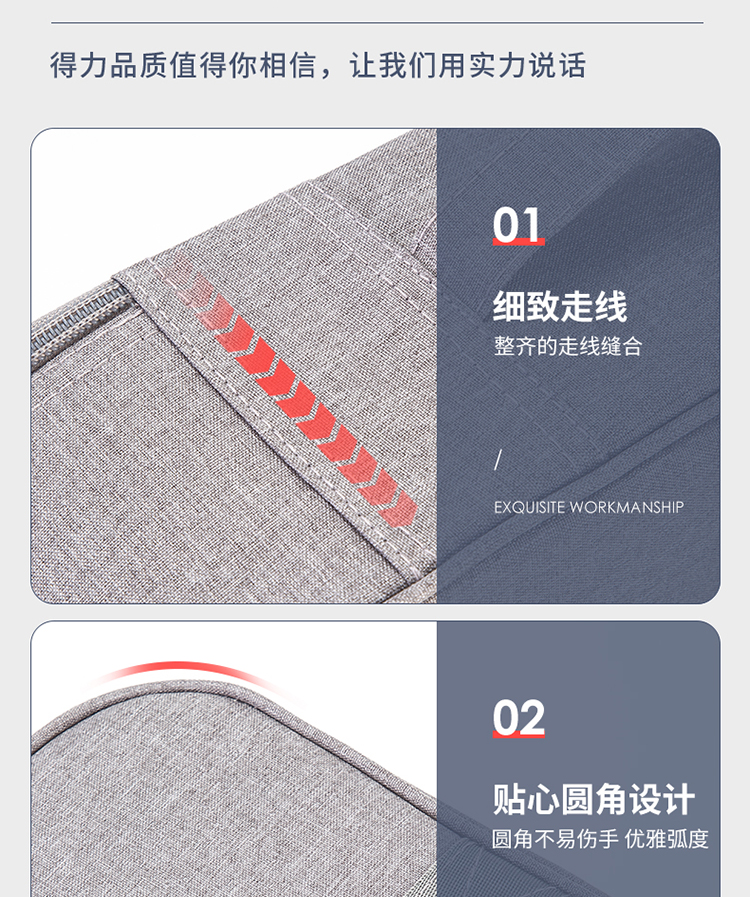 得力(deli)大容量多功能文件袋 雙層 灰色 63758