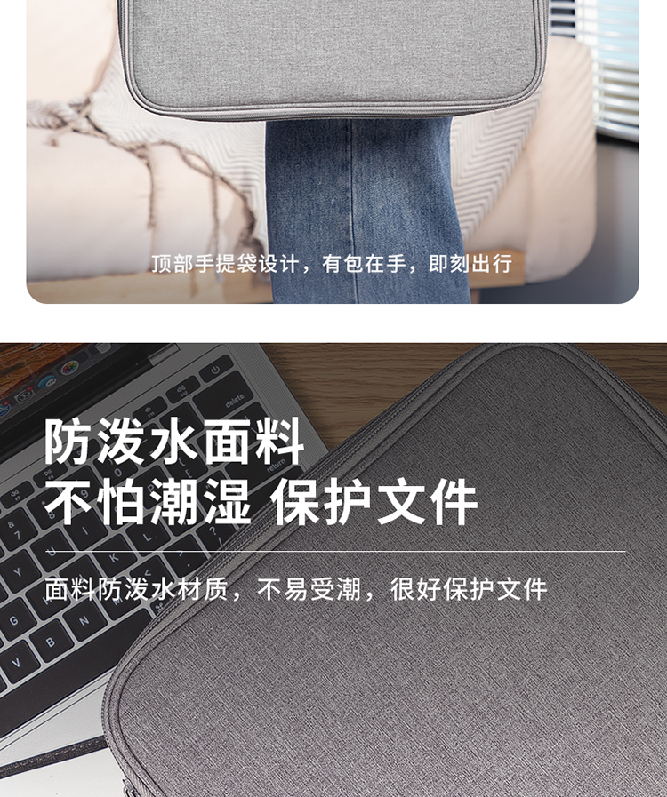 得力(deli)時(shí)尚簡(jiǎn)約手提會(huì)議包事務(wù)包 商務(wù)拉鏈袋電腦包公文包 深灰