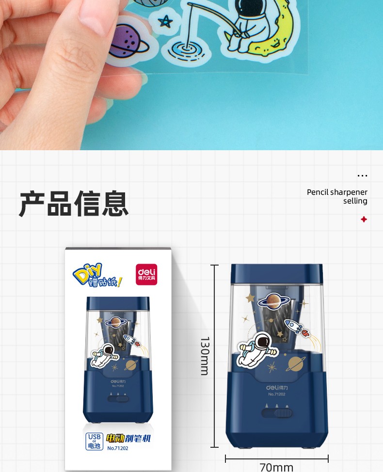 得力(deli)全自動轉(zhuǎn)筆刀學生文具 71202
