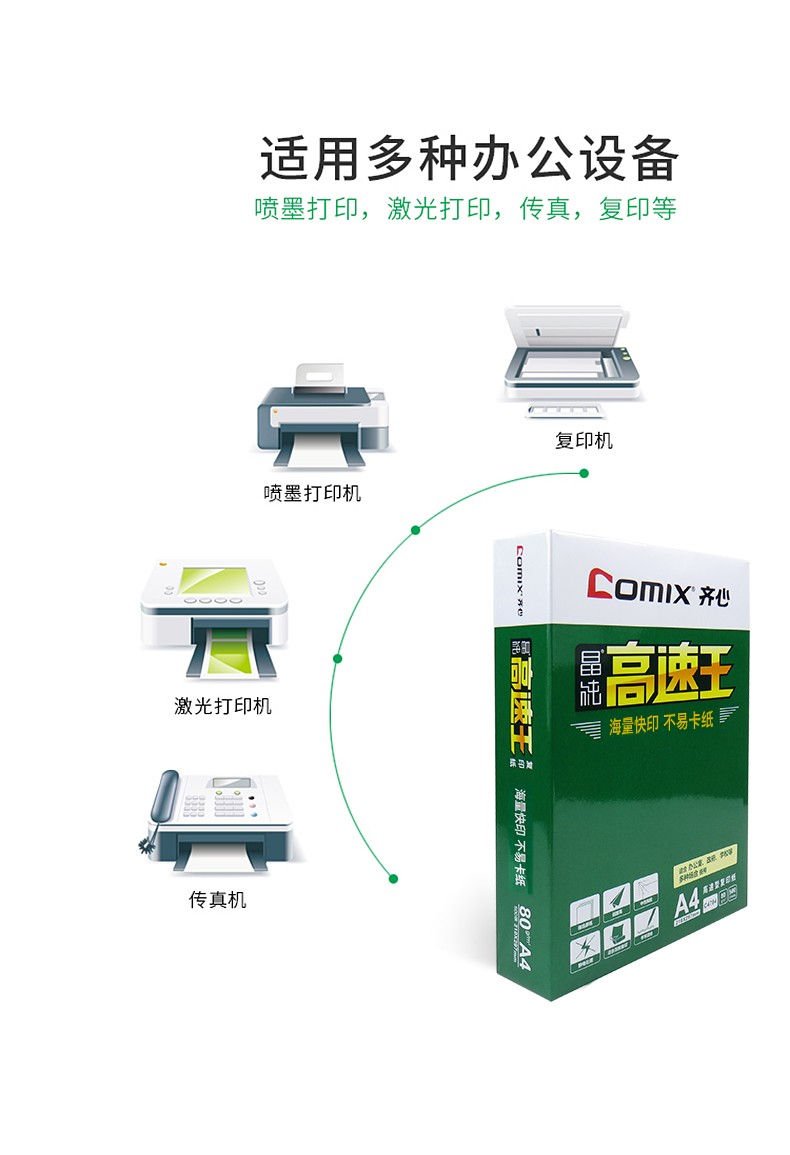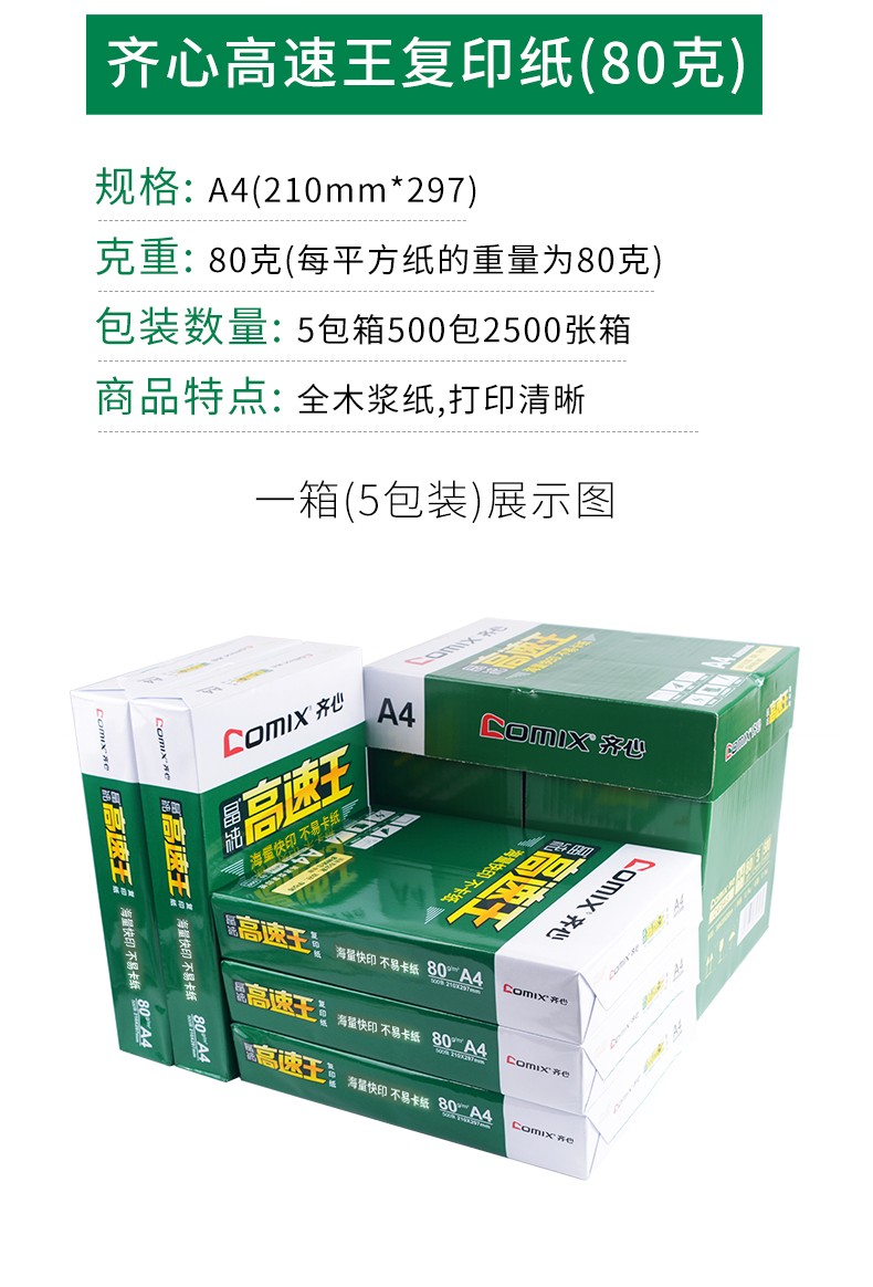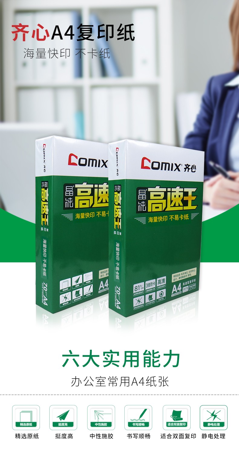 齊心(COMIX)晶純高速王打印紙復(fù)印紙辦公用品 A3 70g 整箱(2000張)C4773-4