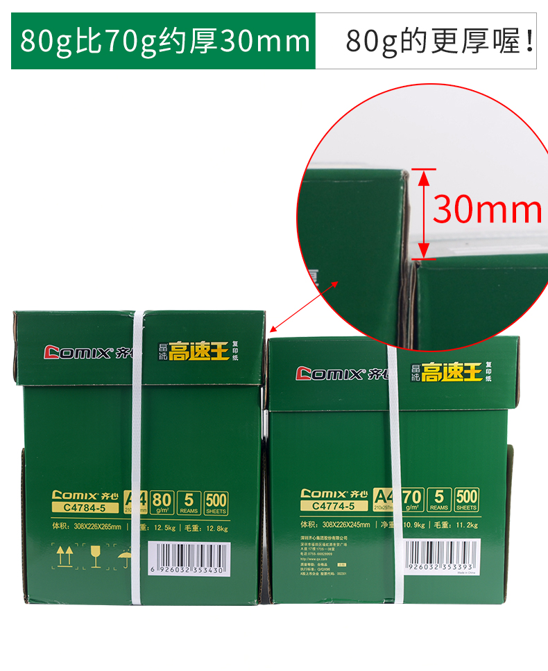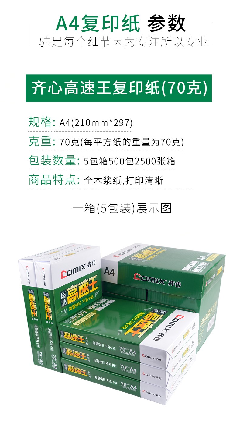 齊心(COMIX)C4774-5 A3 70g 高速王 打印紙 500張/包 4包/箱