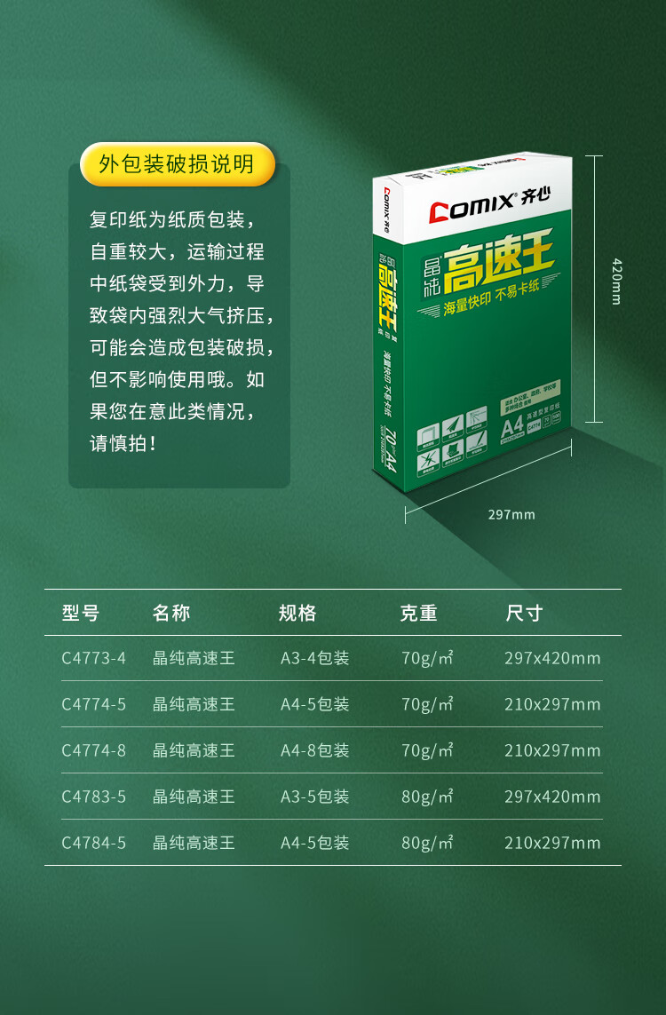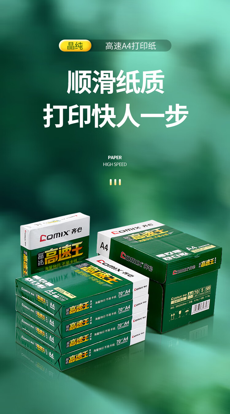 齊心(COMIX)晶純高速王打印紙復印紙辦公用品 A5 70g 整箱