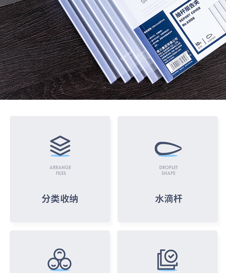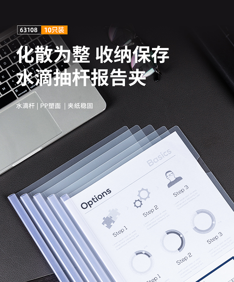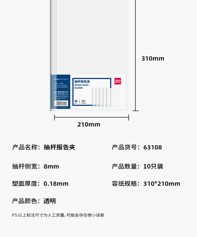 得力(deli)10只A4透明拉桿夾 8mm抽桿夾報告夾63108