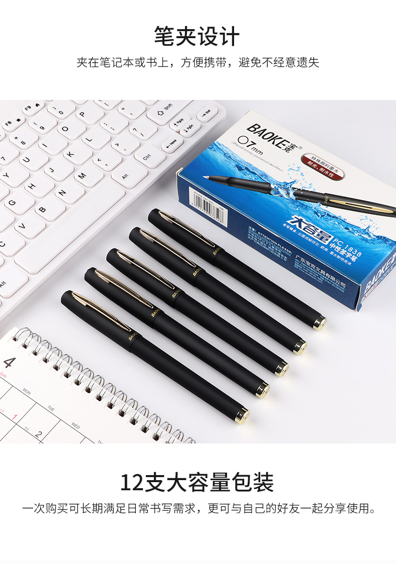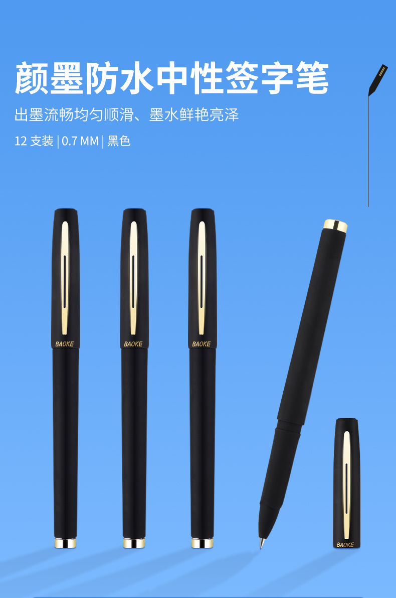 寶克(BAOKE)PC1838 0.7mm大容量中性筆品質(zhì)辦公簽字筆磨砂筆桿水筆 黑色 12支/盒