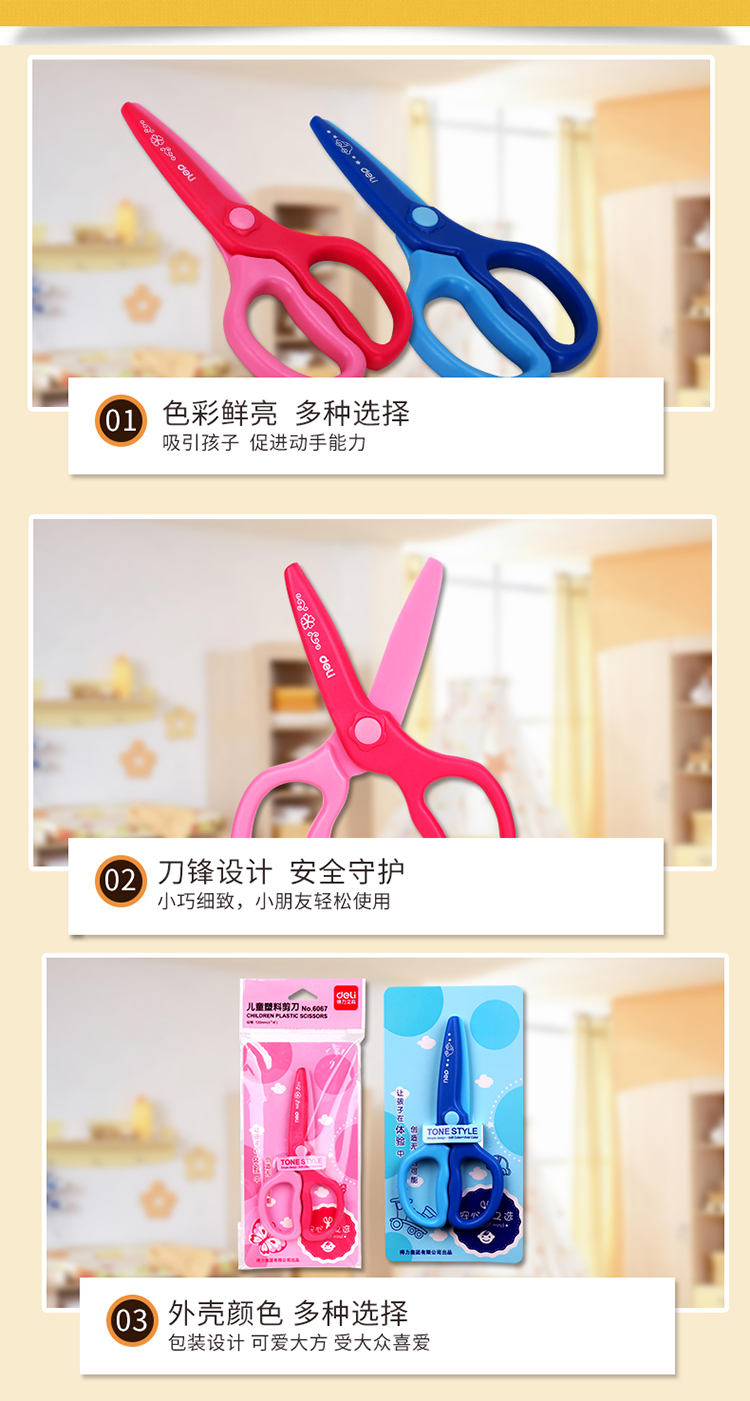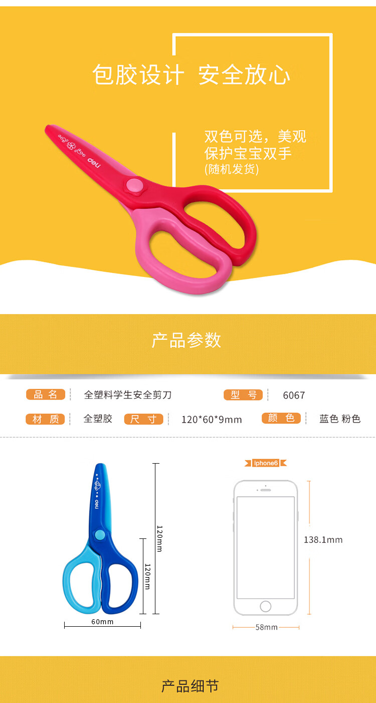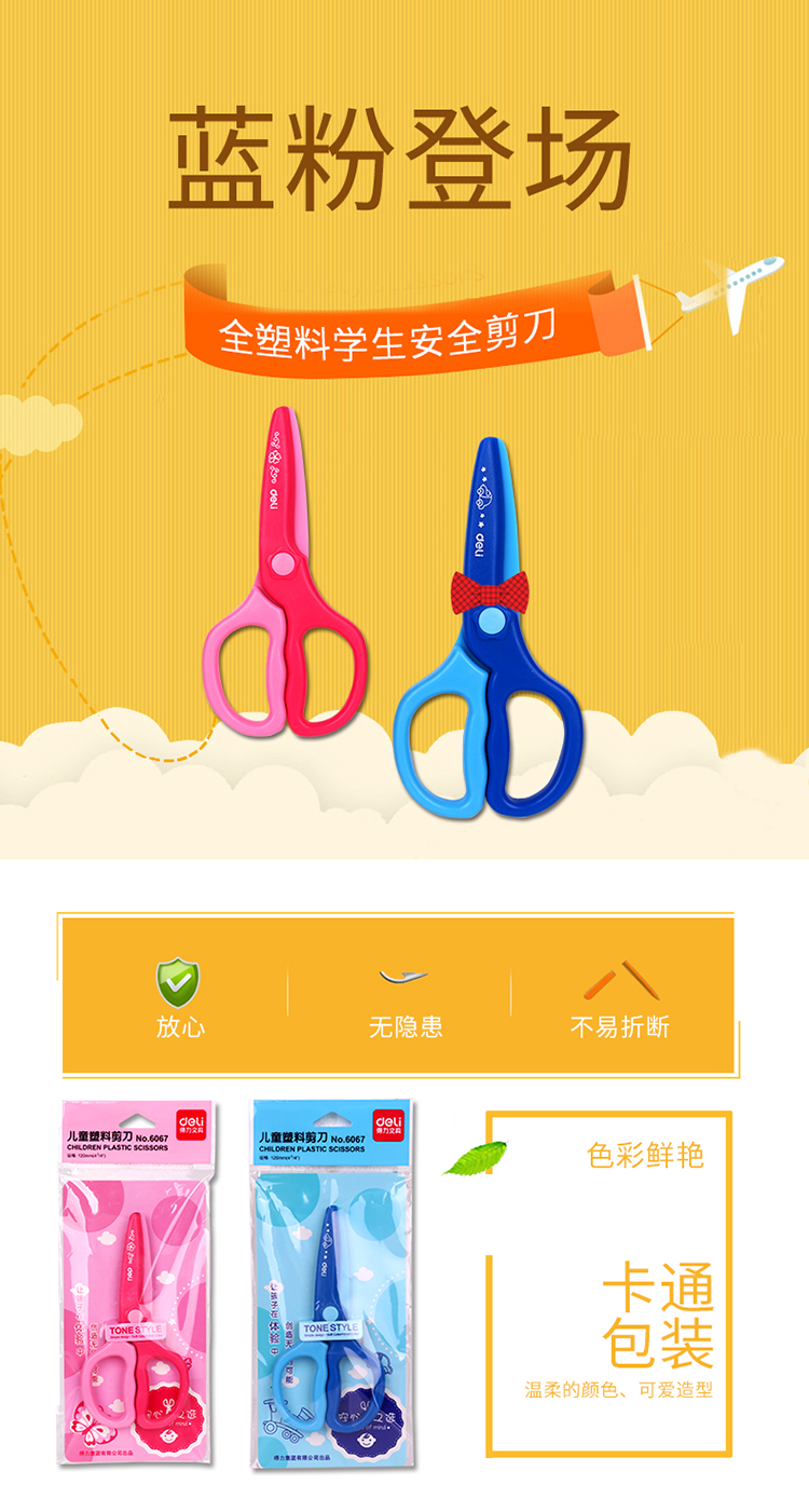 得力(deli)兒童安全剪刀/學(xué)生塑料裁紙剪刀 顏色隨機(jī)6067