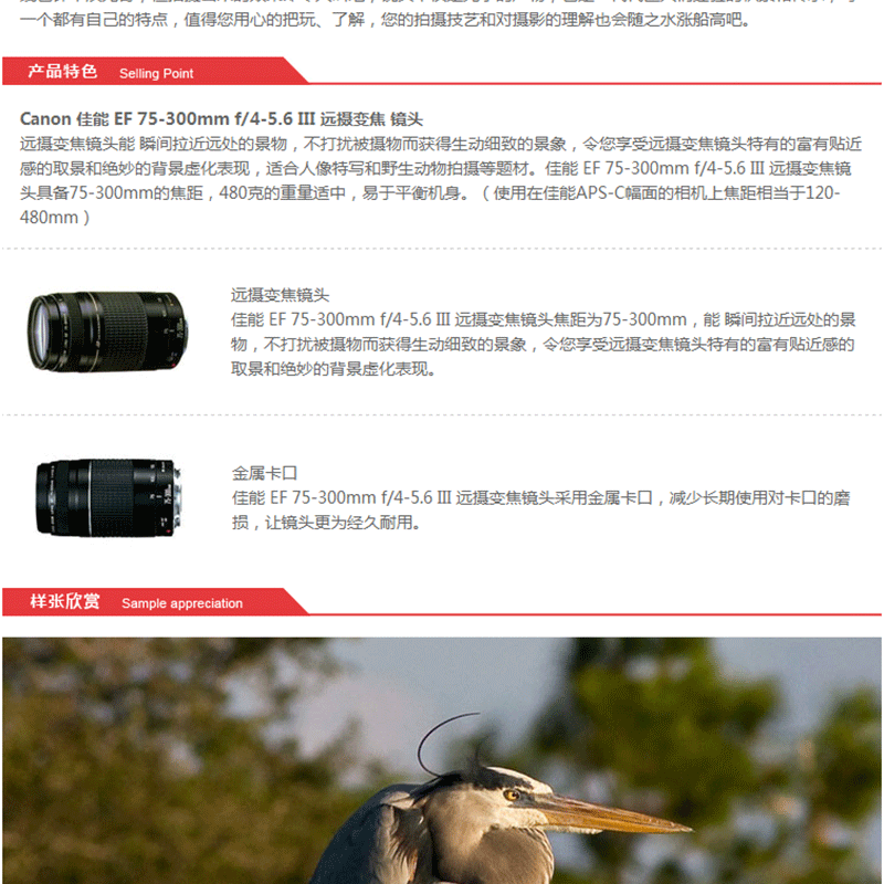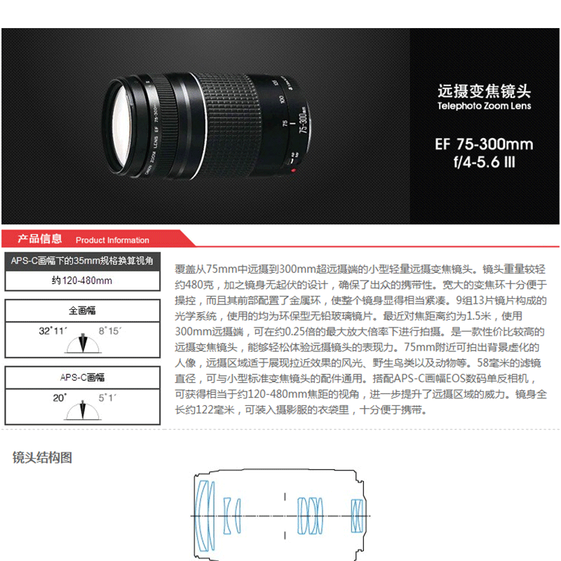 佳能(Canon) EF 75-300mm f/4-5.6 III 遠(yuǎn)攝變焦鏡頭