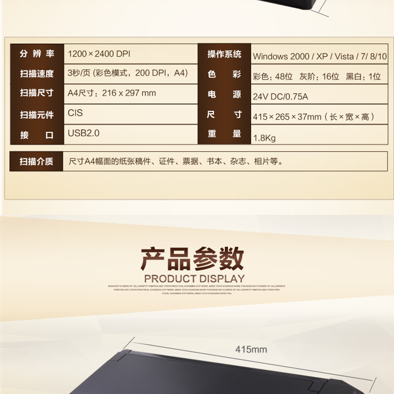 薄款設(shè)計 橫向開蓋 200dpi彩色A4掃描全幅僅用3秒 ?