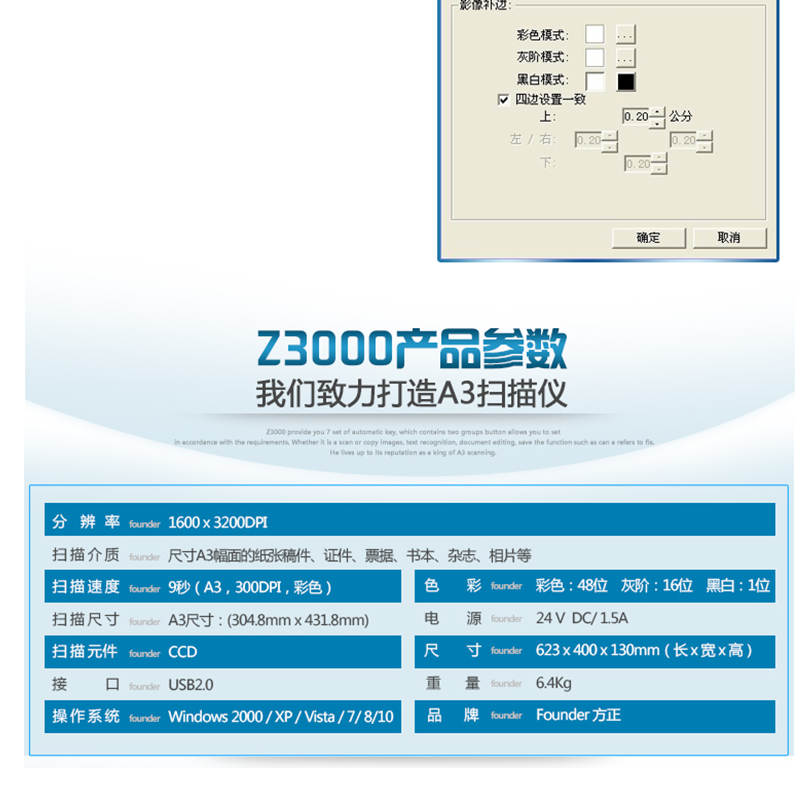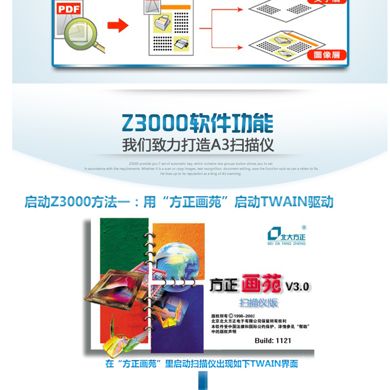 方正(Fouder) Z3000 A3大幅面平板掃描儀 彩色快速CCD