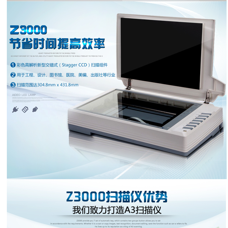 9秒完成300dpi A3尺寸彩色掃描,高圖像質(zhì)量—CCD掃描器件,附送多種圖像處理軟件 ?