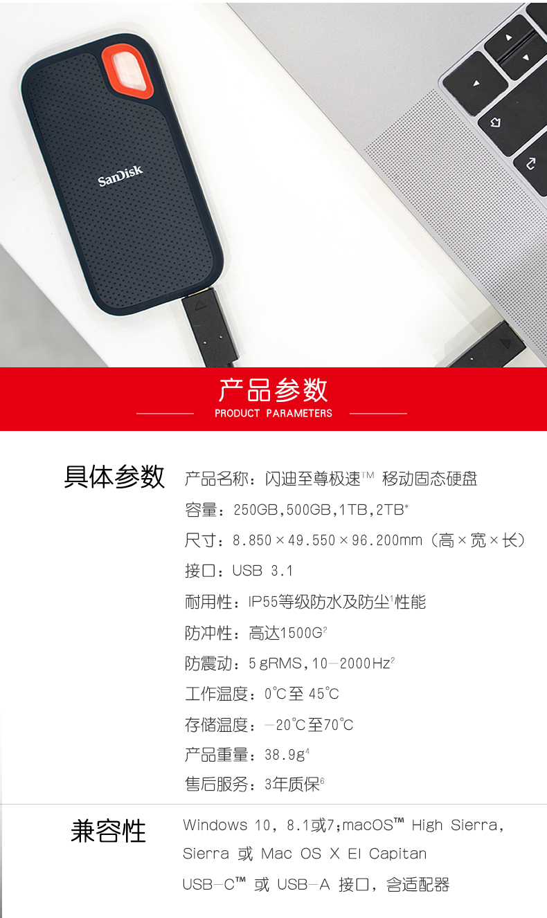 閃迪(SanDisk)1TB Type-c移動(dòng)硬盤(PSSD)Z25