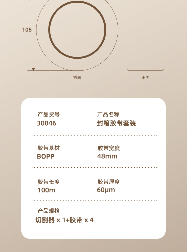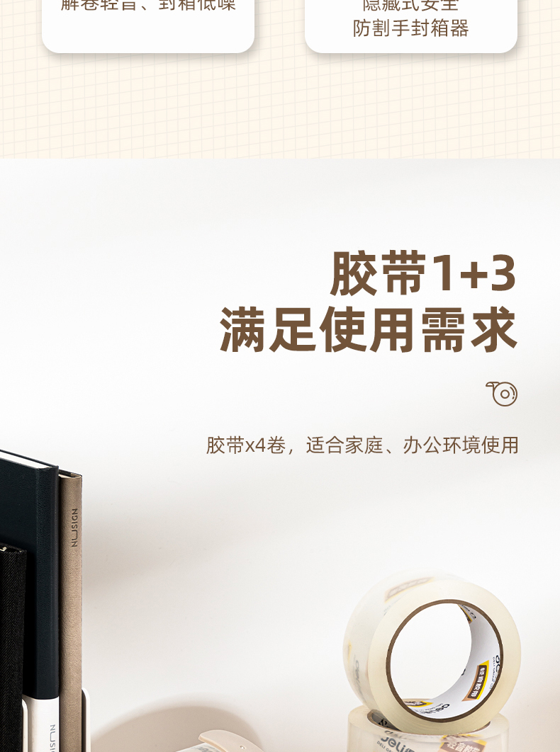 得力(deli)封箱膠帶 48mm*60m*60μm 4卷裝 帶切割器 30046透明