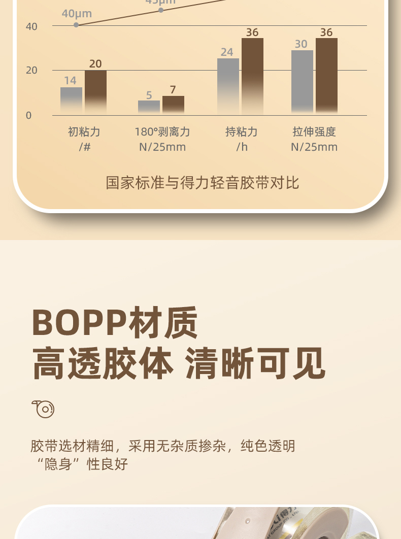 得力(deli)高品質(zhì)高透明封箱膠帶打包膠帶 48mm*40y*50um/30246