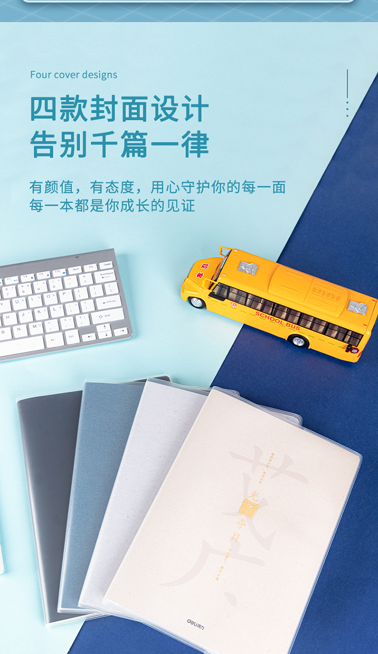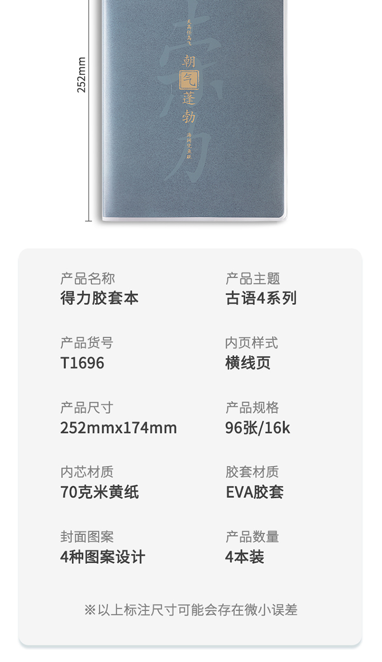 得力(deli)古語系列筆記本子膠套本 16K96張 4本裝 T1696