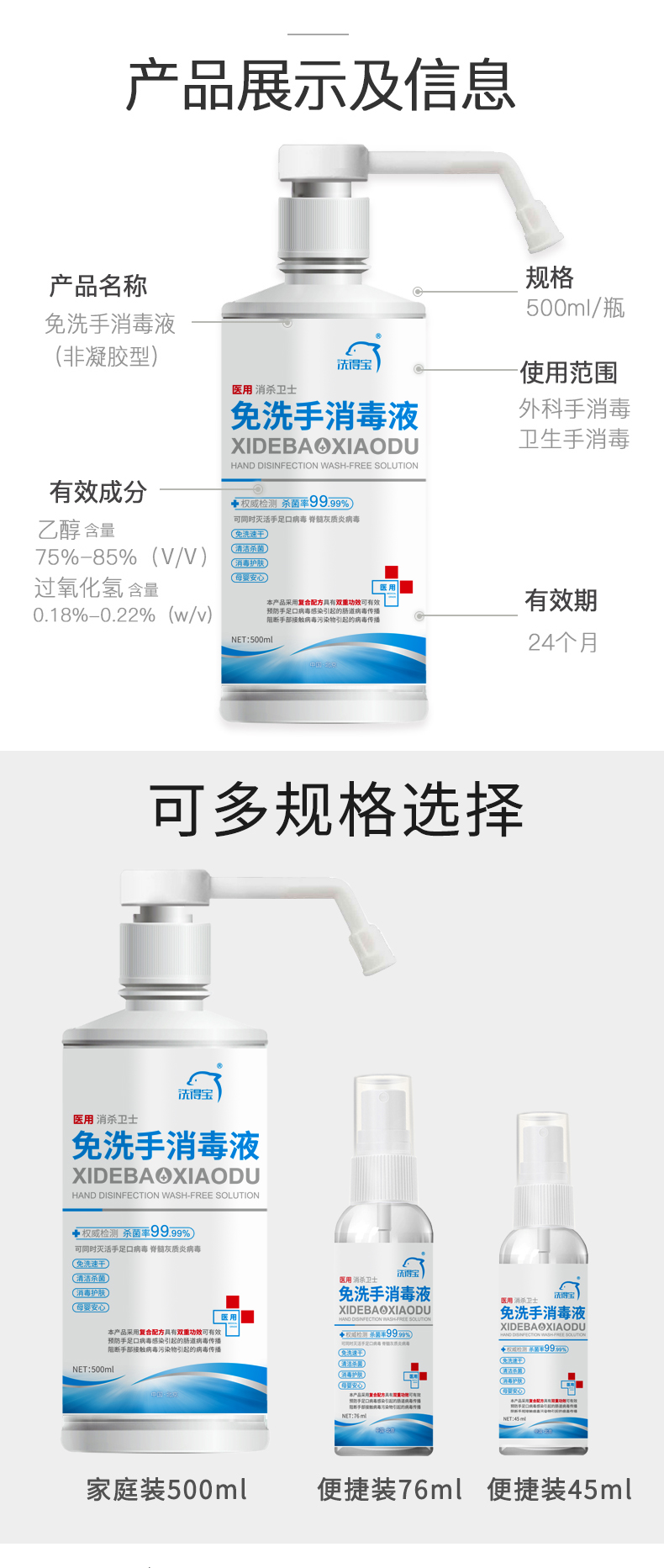 洗得寶 75%醫(yī)用酒精免洗洗手液 免洗手消毒液76ml 居家辦公學校便攜