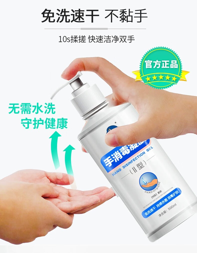 洗得寶 75%酒精免洗洗手液500ml 乙醇免洗酒精手消毒液居家辦公學(xué)校