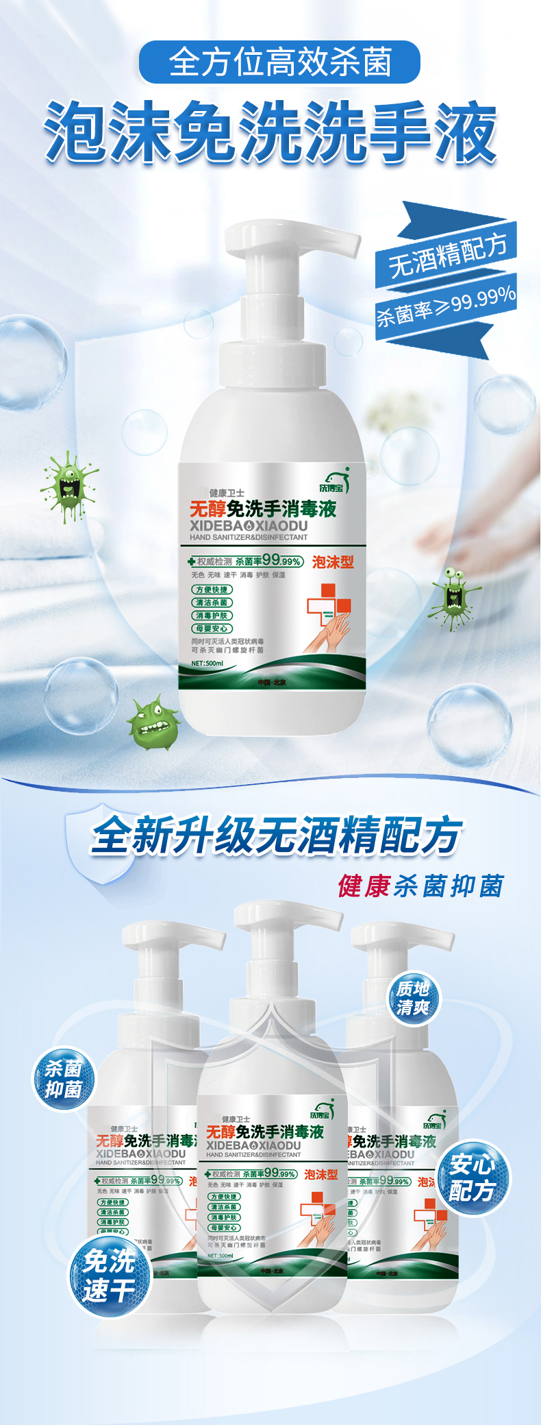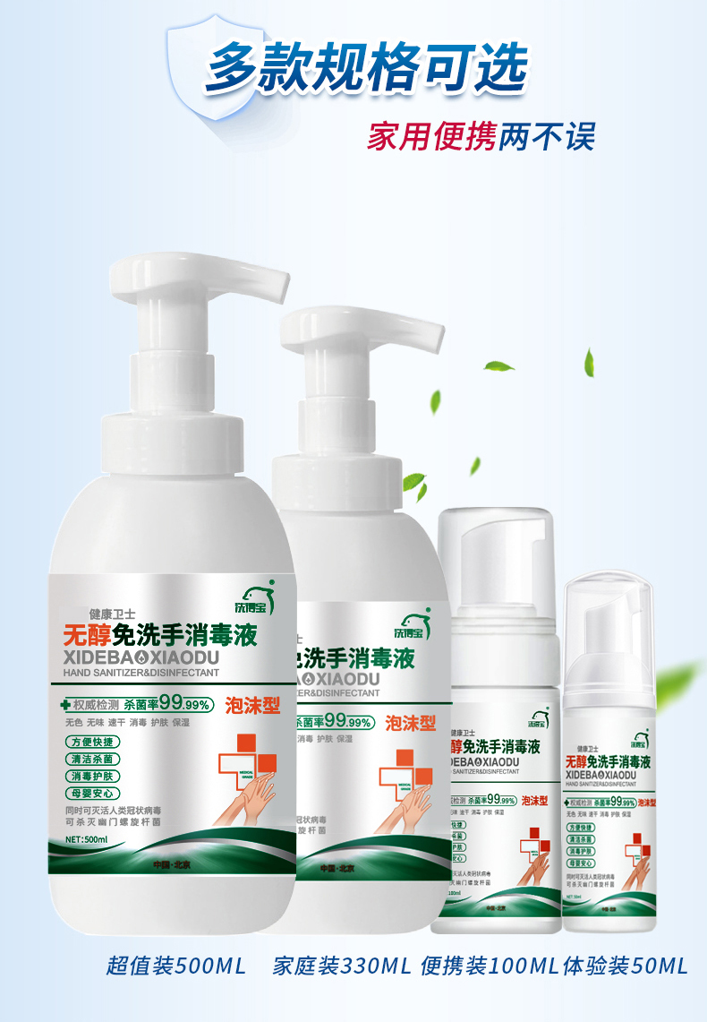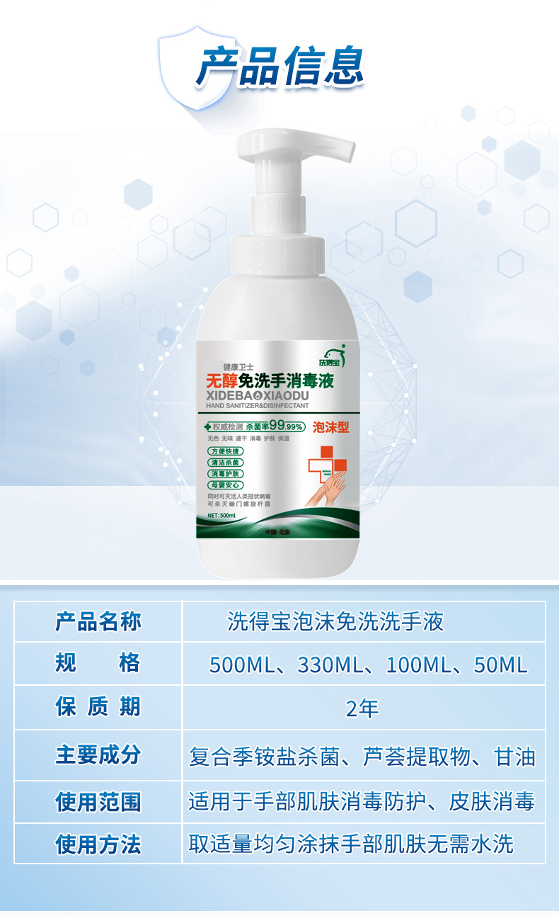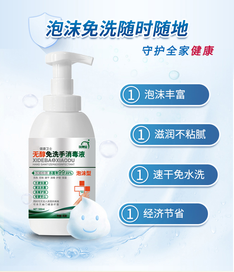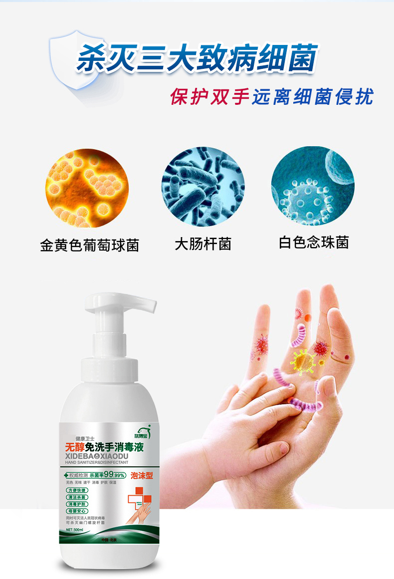 洗得寶 免洗洗手液 不含酒精免洗手消毒液 500ml 兒童便攜家用泡沫型