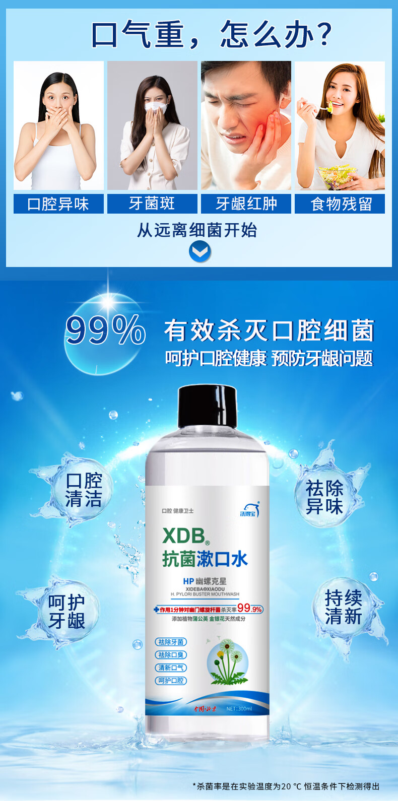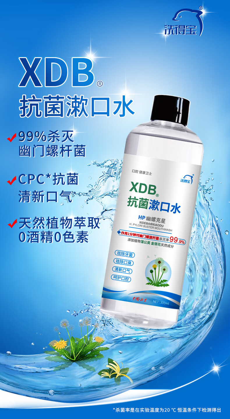 洗得寶抗菌 漱口水便攜殺菌清新口氣殺滅幽門螺桿菌祛口臭口腔清潔清新劑天然植物精華萃取300ml