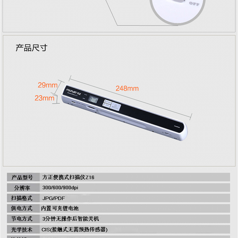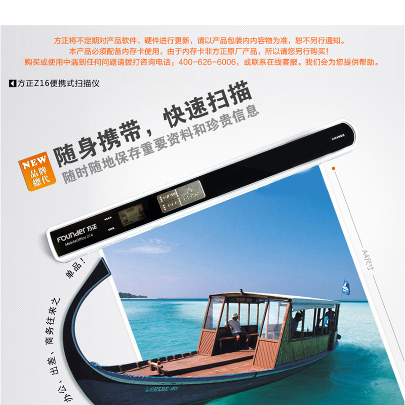 方正(Fouder) Z16 A4彩色手持掃描儀 便攜式充電書刊掃描筆
