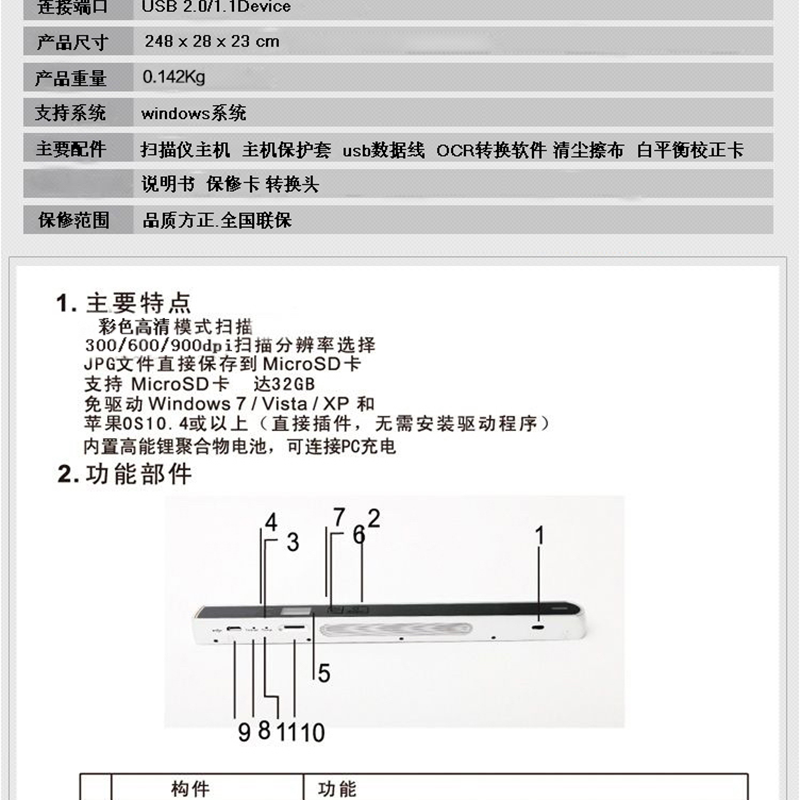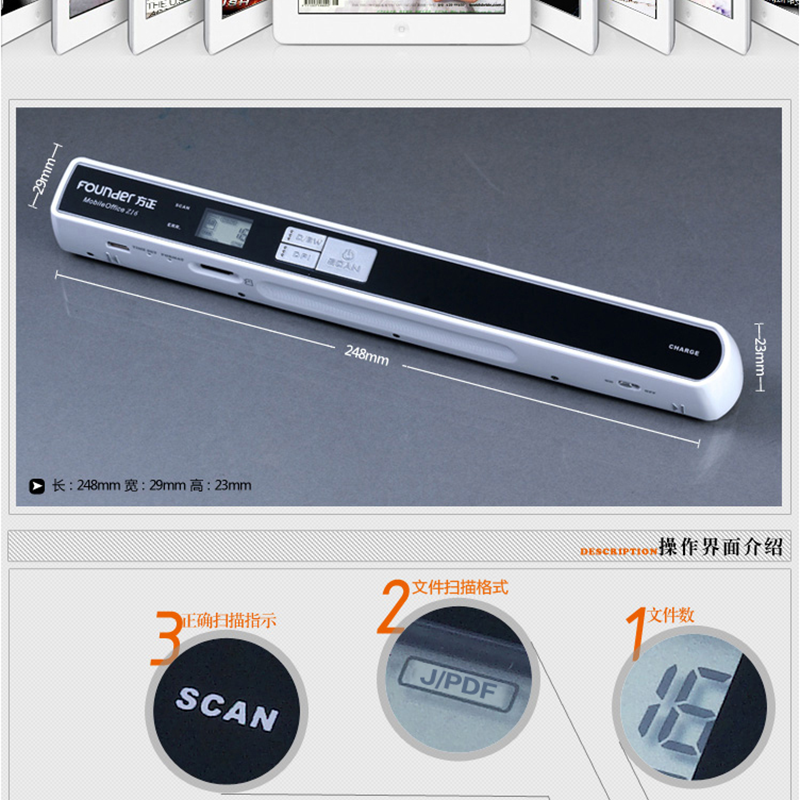 一鍵掃描,脫機(jī)使用;全新設(shè)計(jì),配備高效率鋰電池,連續(xù)掃描1200次;最高支持600dpi;彩色,黑白,最好支持32G內(nèi)存 ?