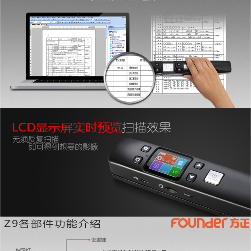 方正(Fouder) Z9 A4彩色WIFI無(wú)線手持掃描儀 便攜式書(shū)刊掃描筆