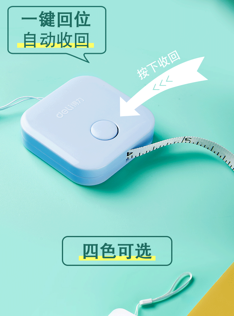 得力(deli) 糖果色迷你卷尺測(cè)量三圍身高伸縮皮尺79652