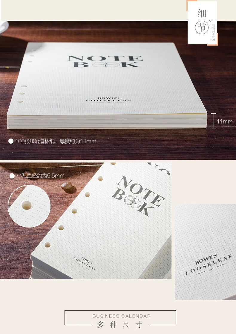 博文(bowen)活頁本替換芯記事本筆記本本子橫線內(nèi)芯【(B5-1002)B5 9孔替芯】