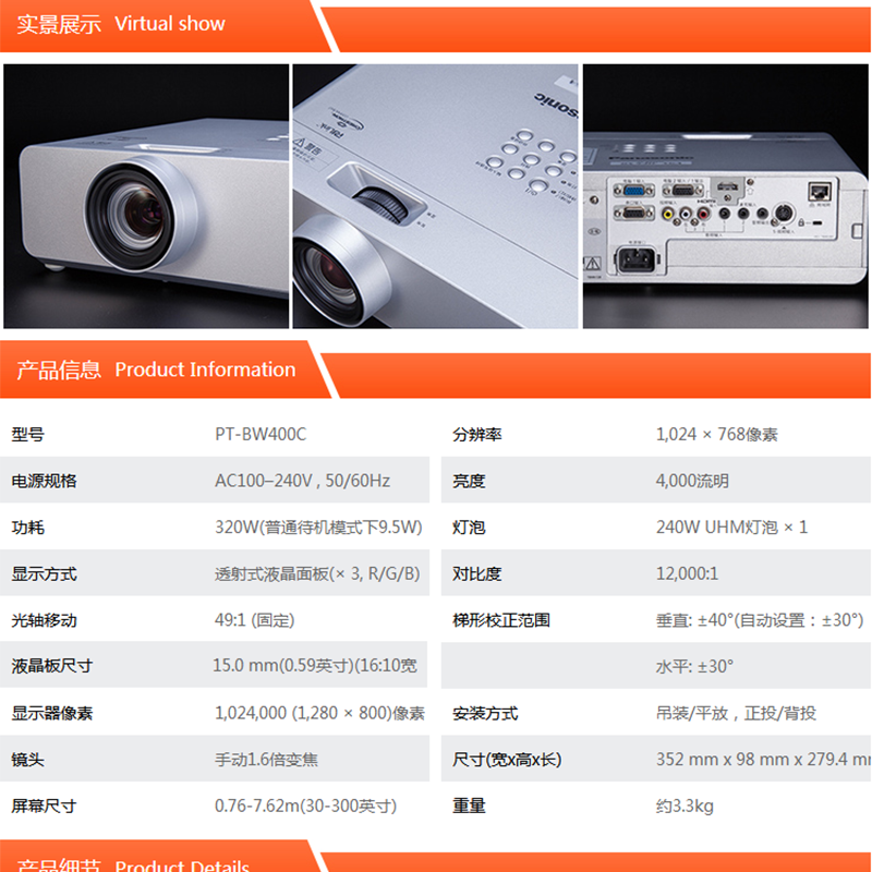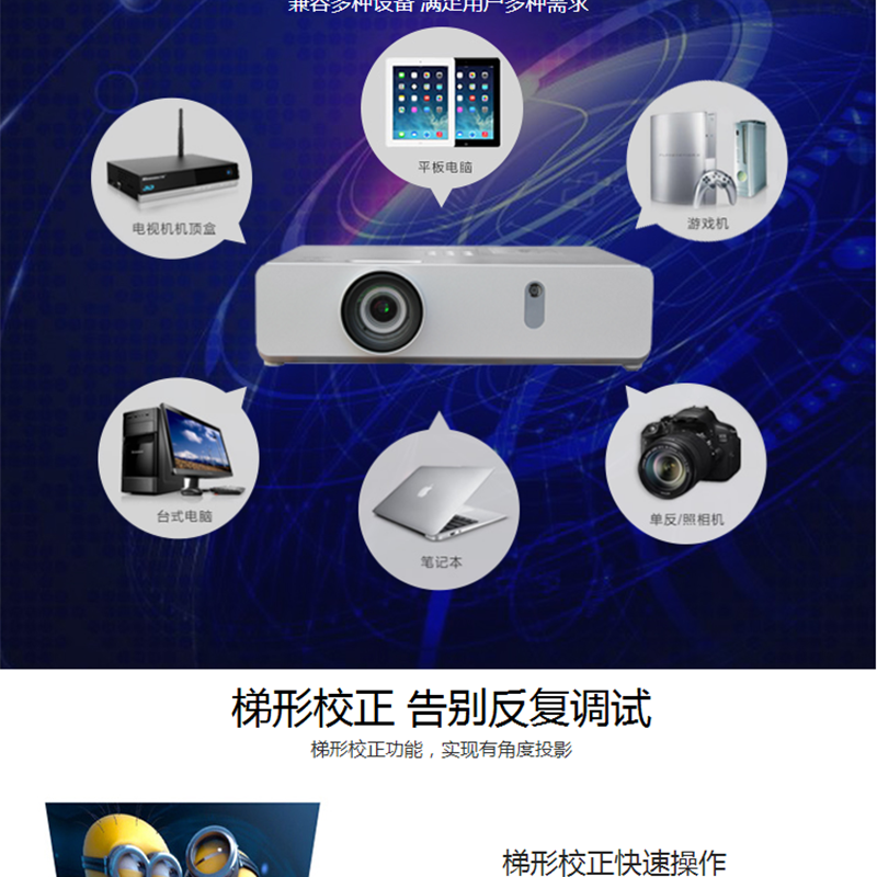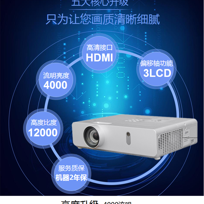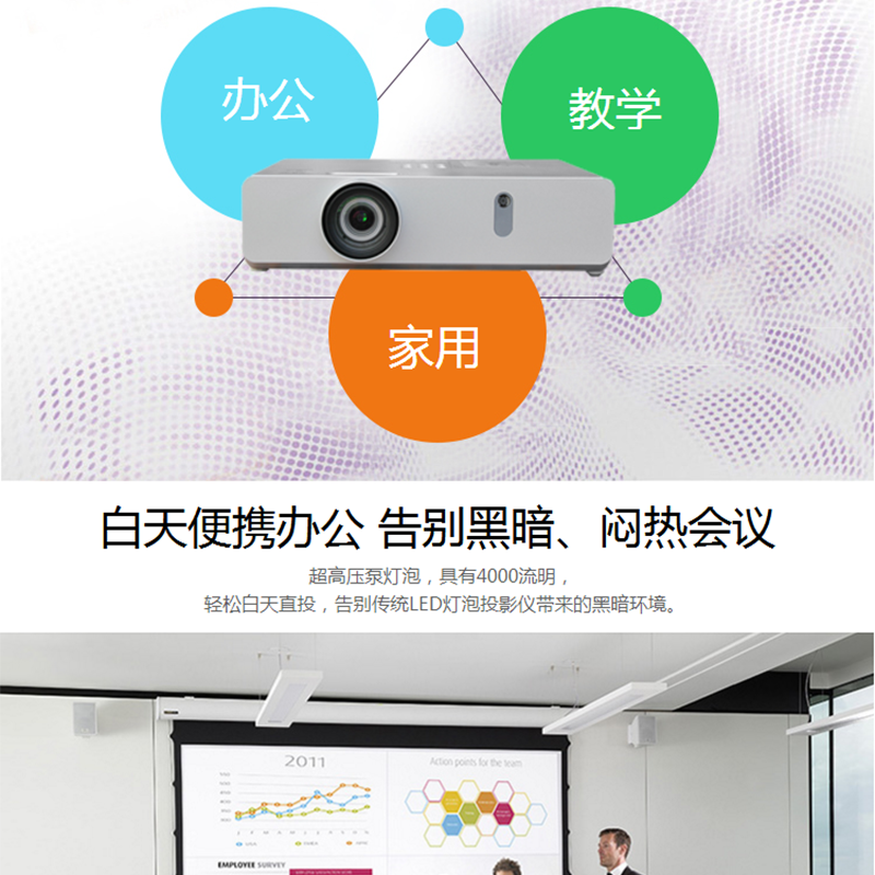 4000流明,高清寬屏,1.6倍變焦鏡頭,支持雙信號輸入和畫中畫功能! ?