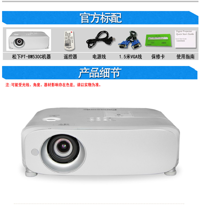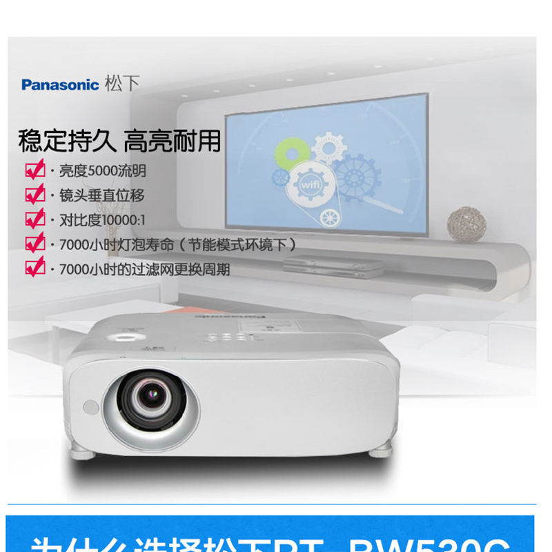 松下(panasonic) PT-BW530C 商務(wù)辦公投影機 5000流明 高清寬屏