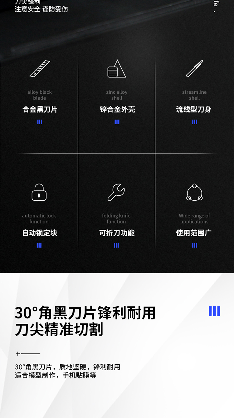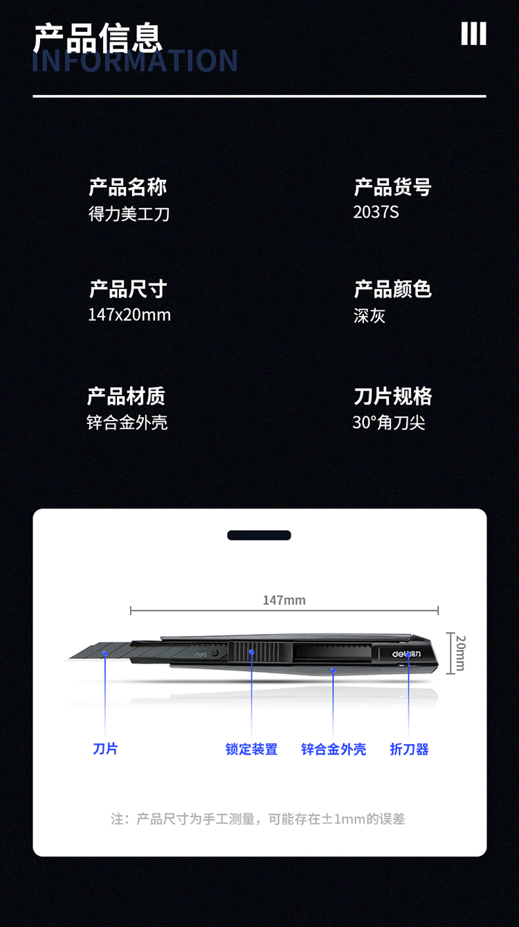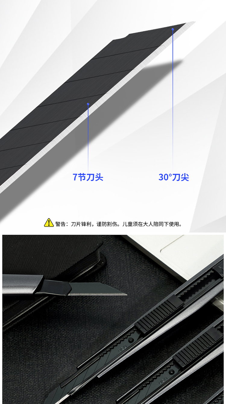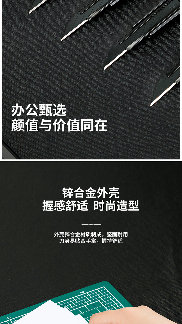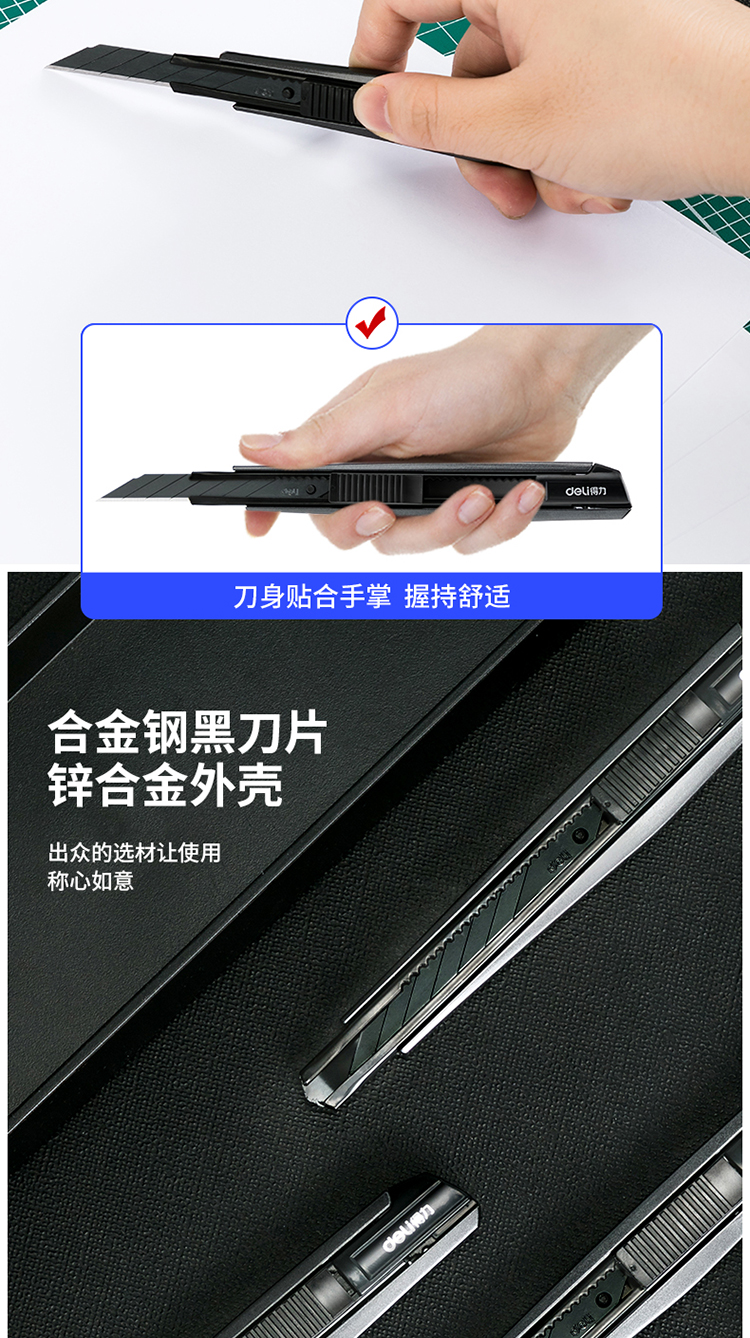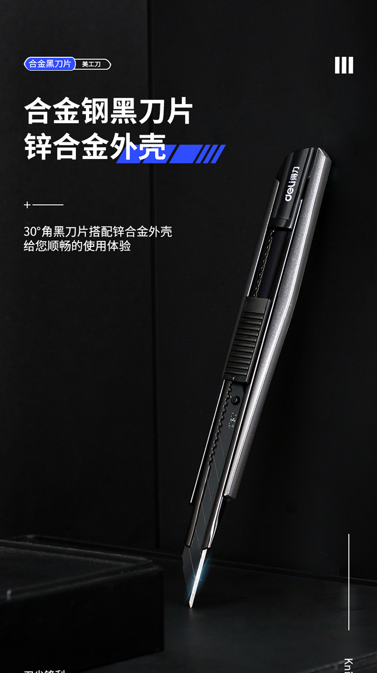 得力(deli)小號(hào)30°黑刀刃鋅合金美工刀/裁紙刀/壁紙刀 2037S