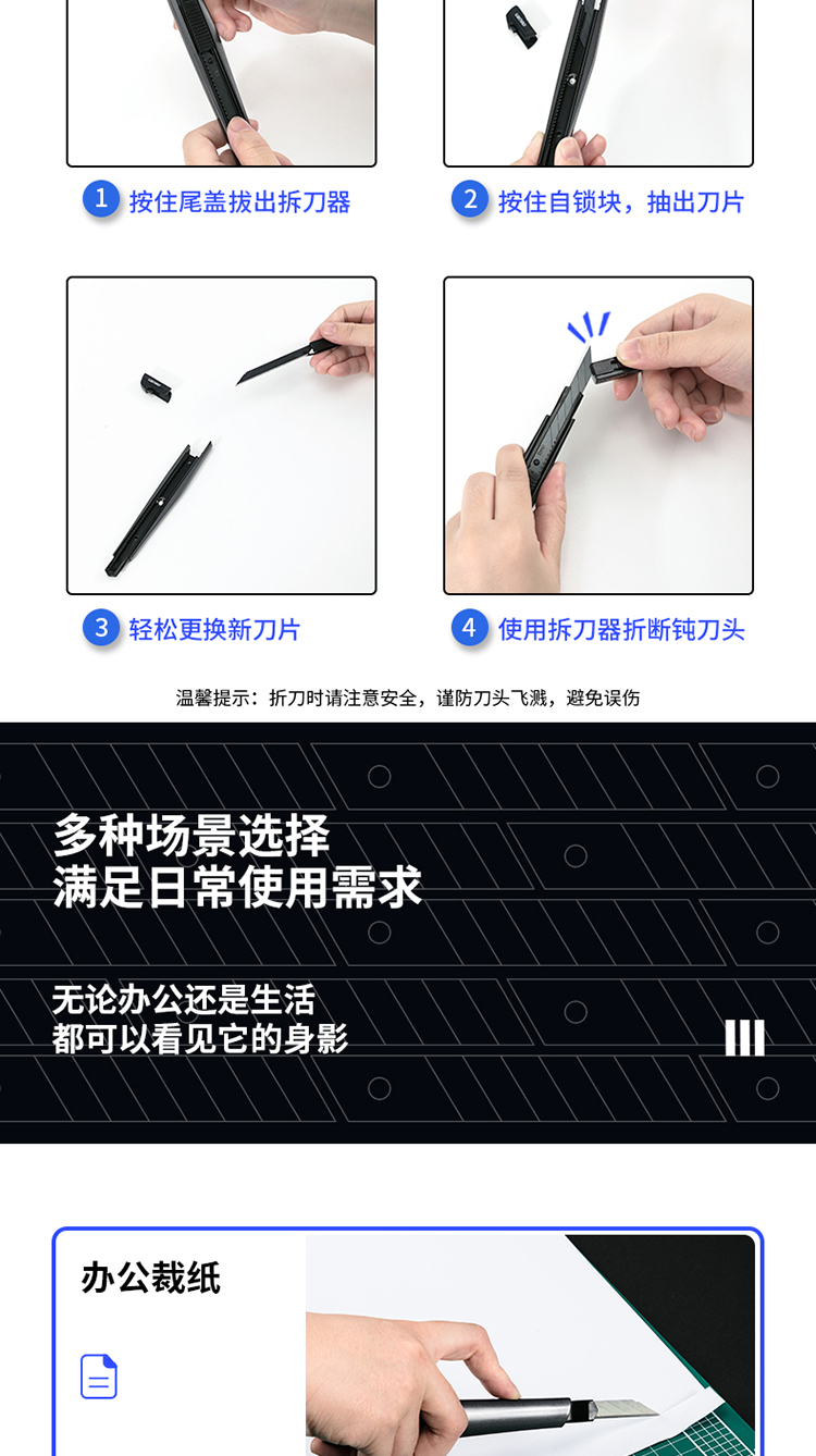 齊心(COMIX) B2805 18mm 高碳鋼鋒利美工刀 壁紙刀顏色隨機(jī)