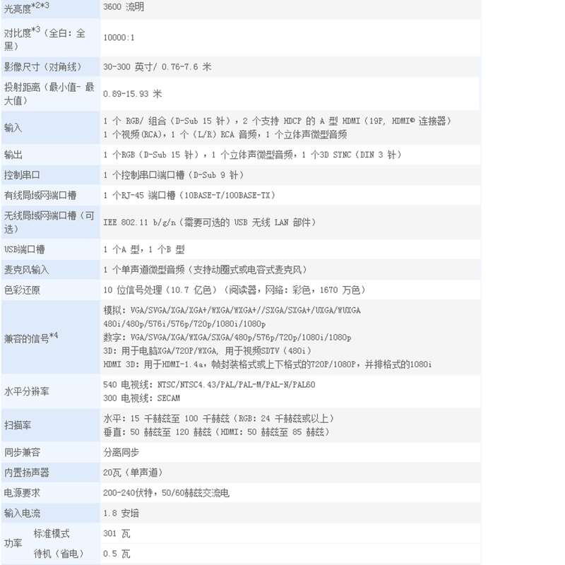 1.7倍變焦比鏡頭,自動(dòng)節(jié)能模式,支持藍(lán)光3D播放,20W揚(yáng)聲器,支持無線 ?